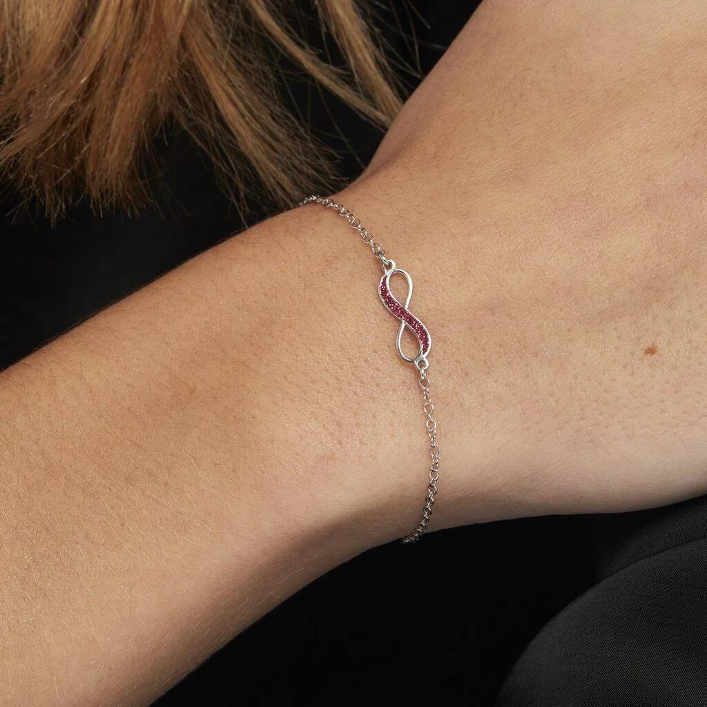 Bracelet Argent Blanc 925/1000 Infini Glitter Rose Maille Forcat 19cm