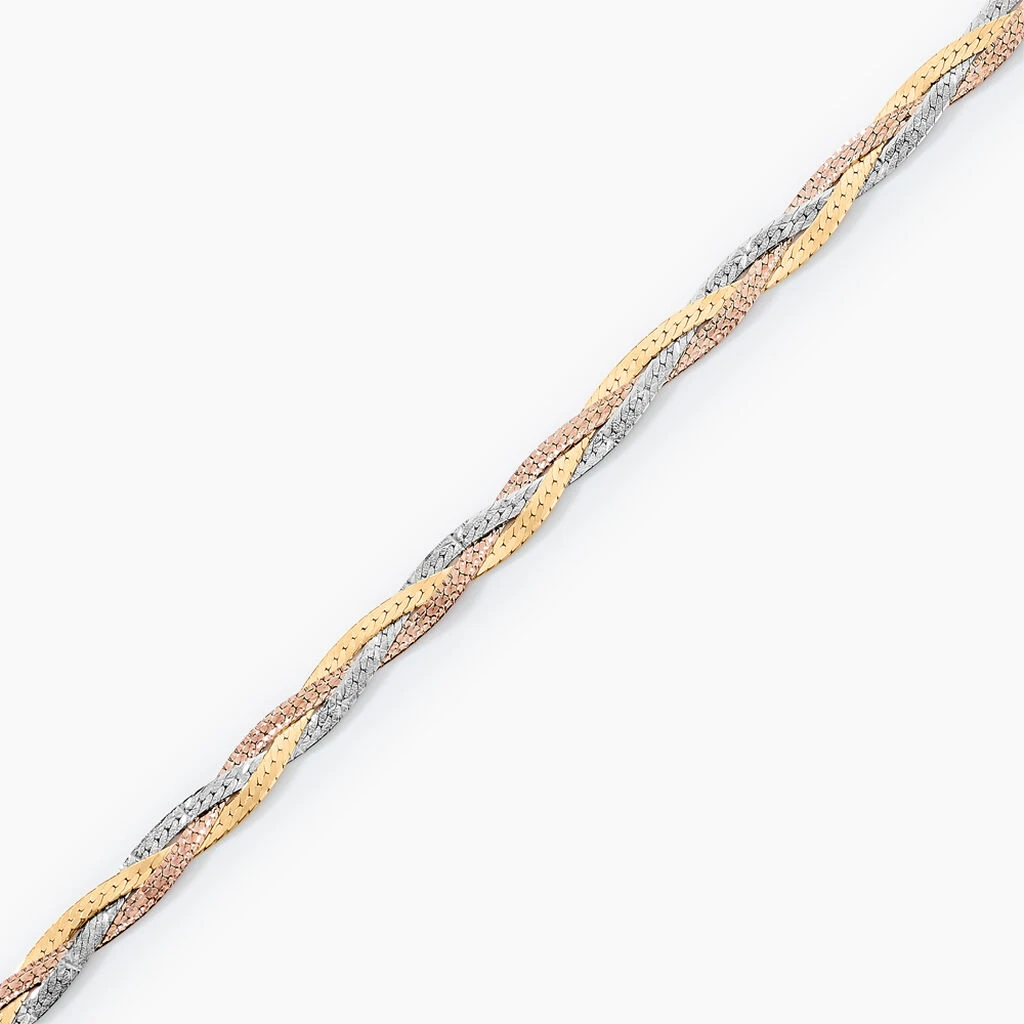 Bracelet Or Tricolore 375/1000 Tresse 3 Fils 3.6mm 20cm