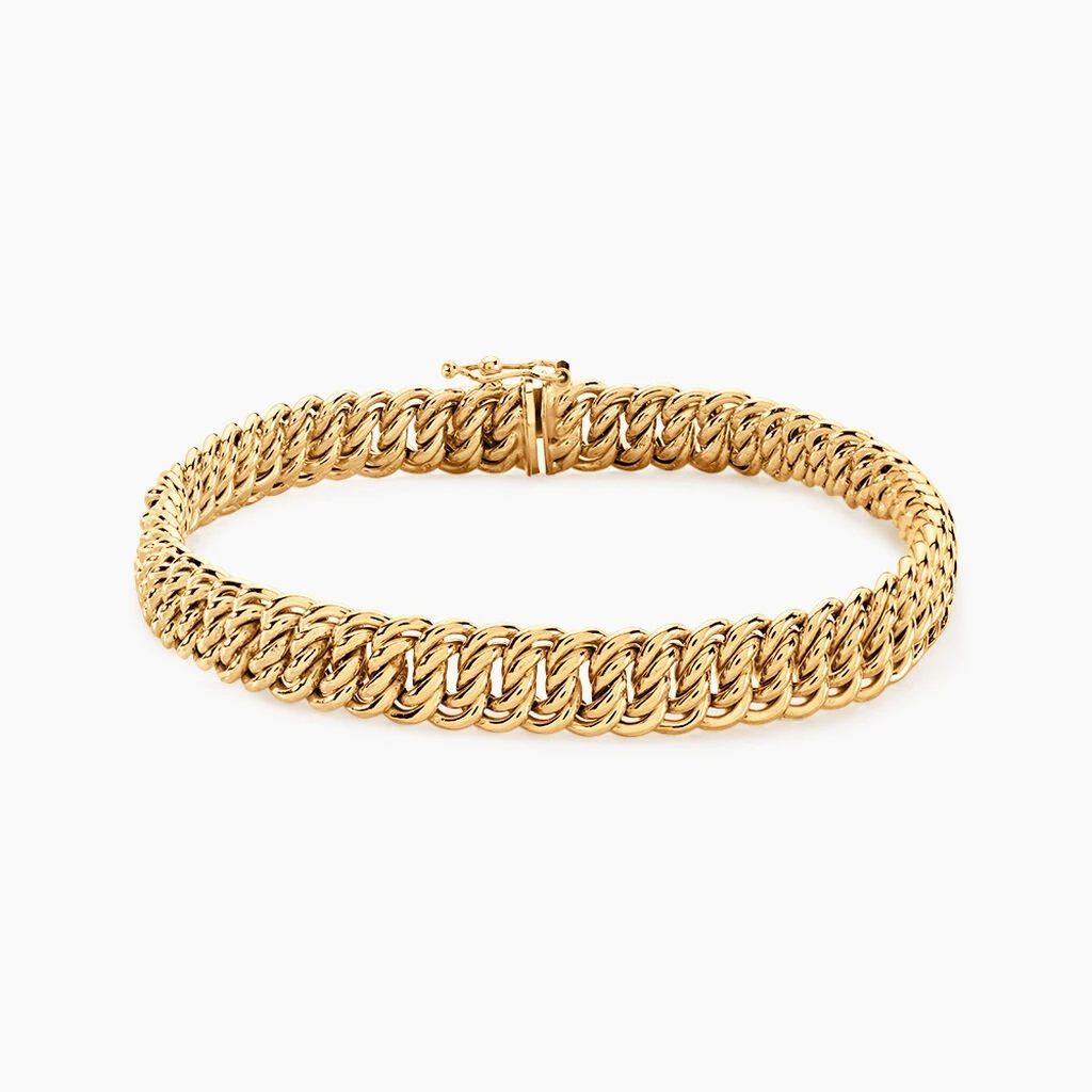 Bracelet Or Jaune 375/1000 Maille Américaine 8mm 22cm