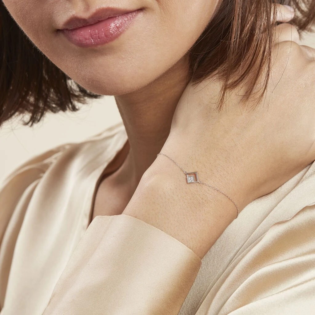 Bracelet Or Blanc 375/1000 Forme Losange Ajoure + Semi Pavage Diamants 18.5cm
