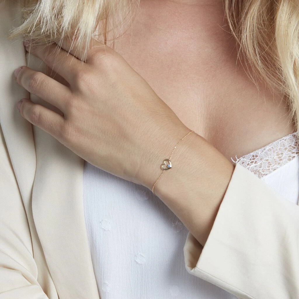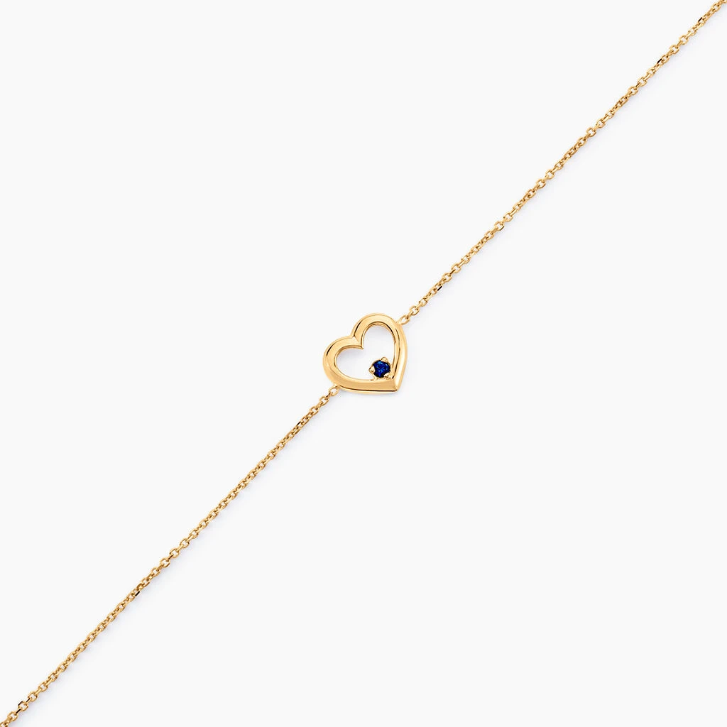 Bracelet Or Jaune 375/1000 Cœur Et Saphir 18cm