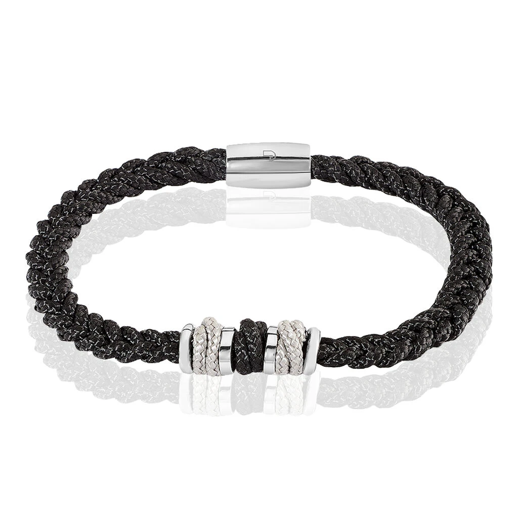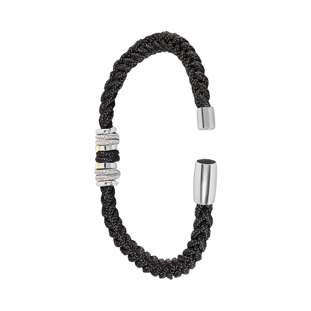 Bracelet Homme Or Et Acier Cordon Marin Noir + 2 Noeuds Cordon Marin Gris 21cm