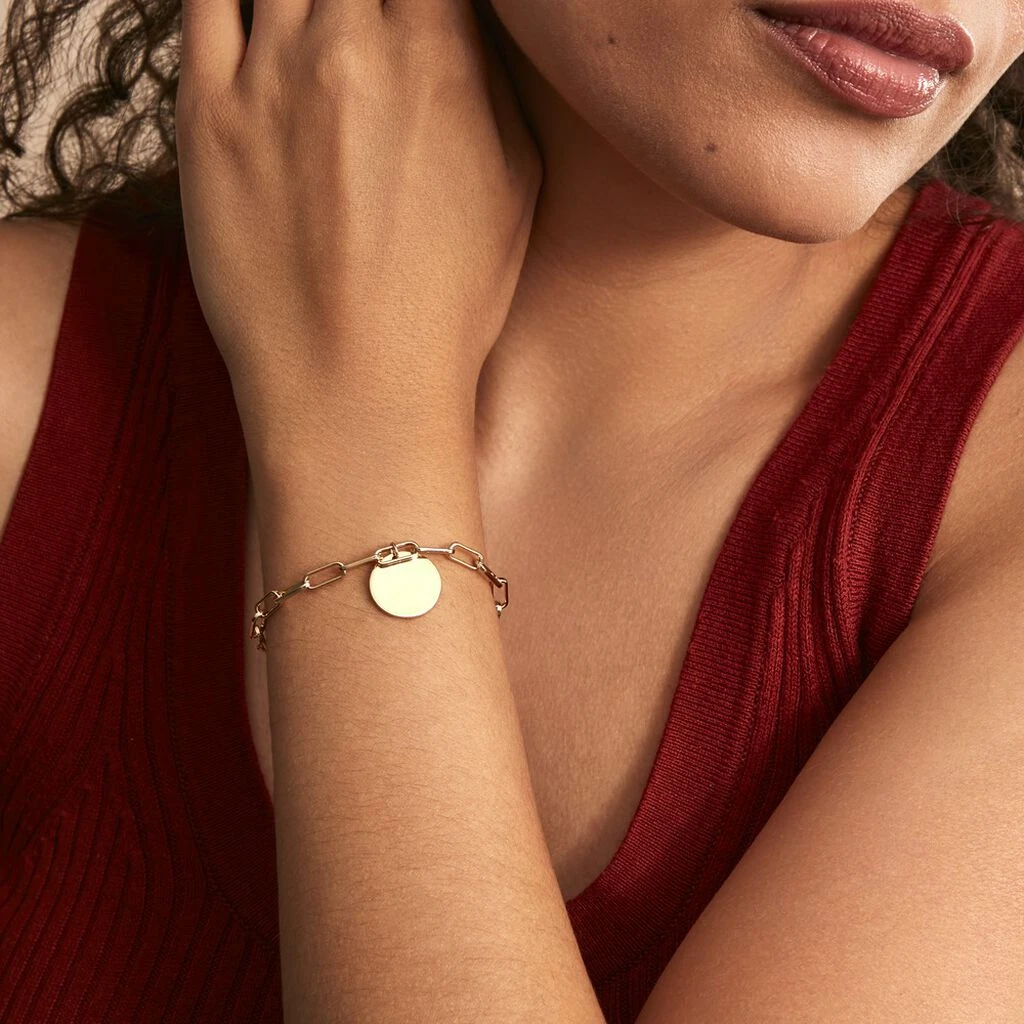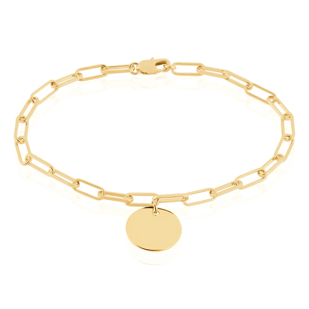 Bracelet Plaqué Or Jaune Pampille Pastille Maille Cheval 3.5mm 21cm