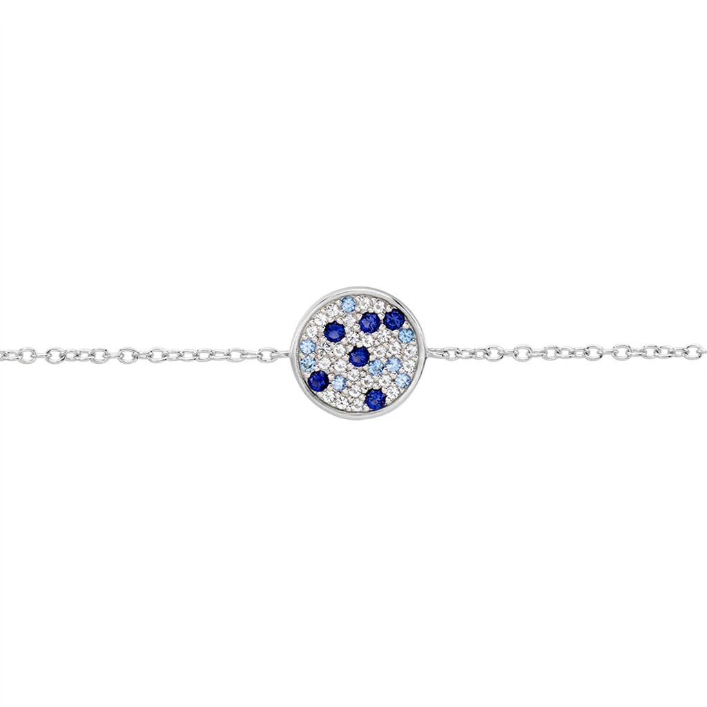 Bracelet Argent Blanc 925/1000 Pastille Camaieu Bleu Micro Setting Oxydes De Zirconium Maille Forçat 18.5cm