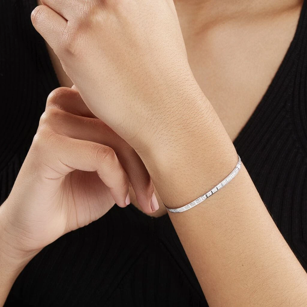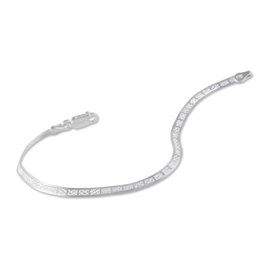 Bracelet Argent Blanc 925/1000 Maille Heringbone Motifs Carres Diamantes Largeur 3.2mm 18cm