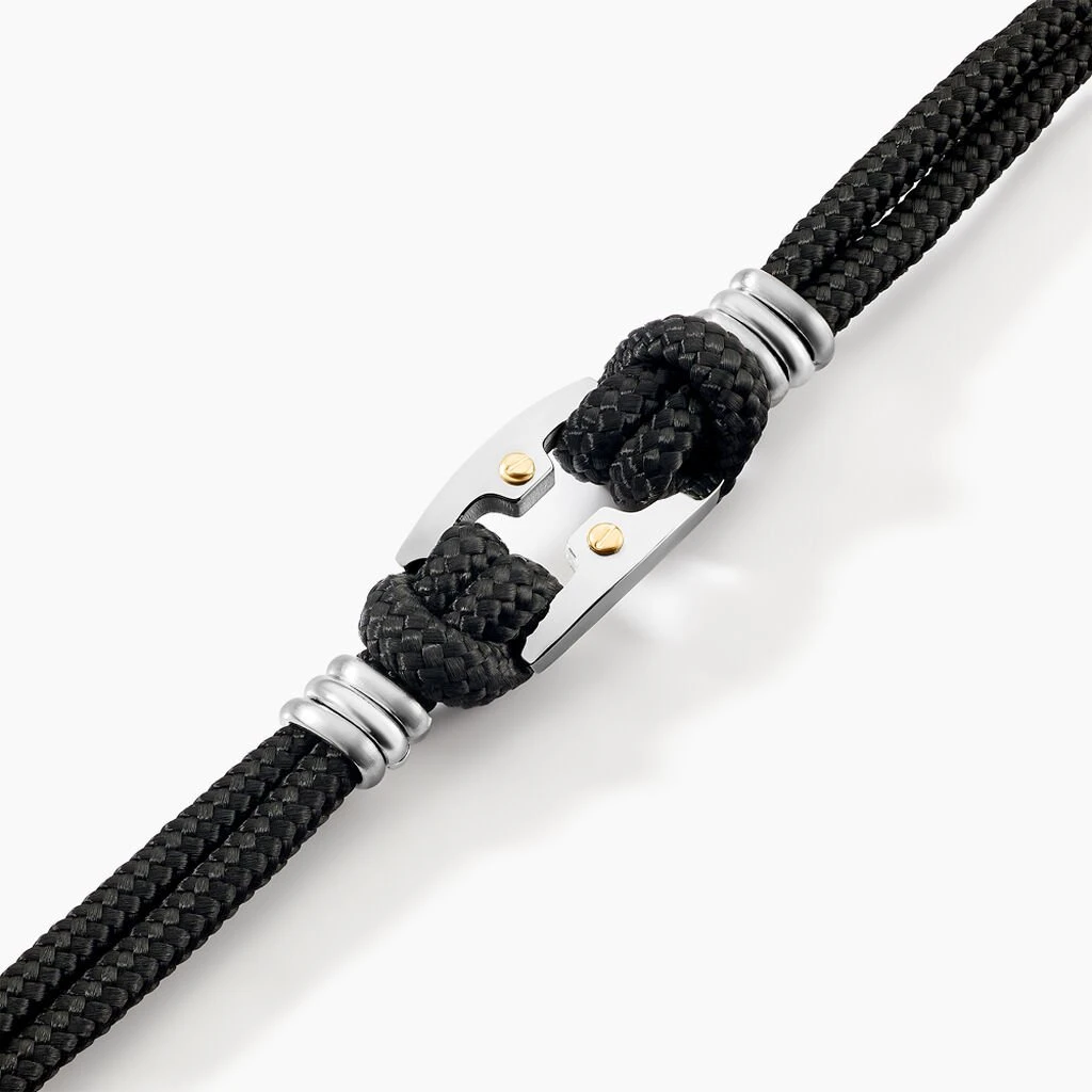Bracelet Acier Cordons Noirs Et Or 21cm