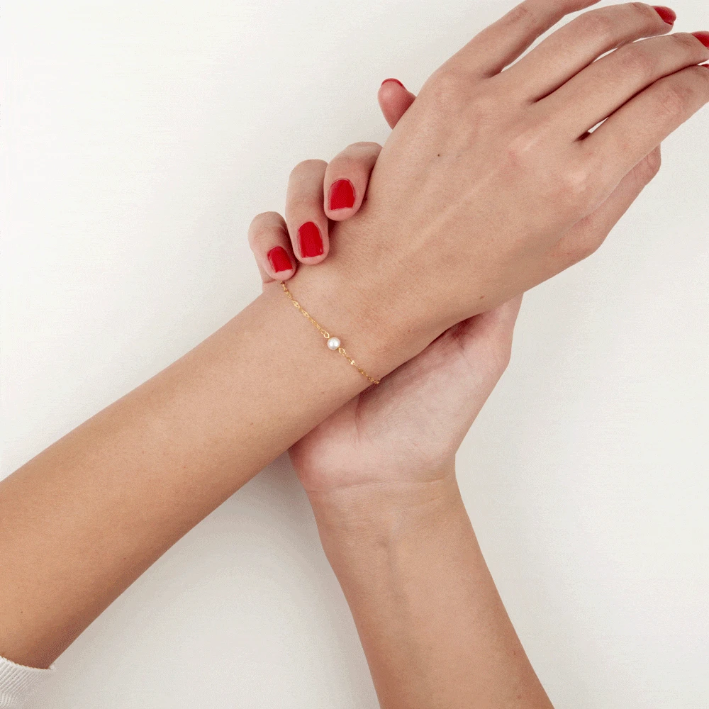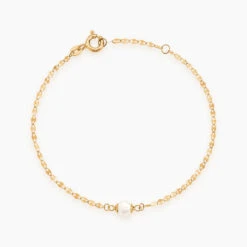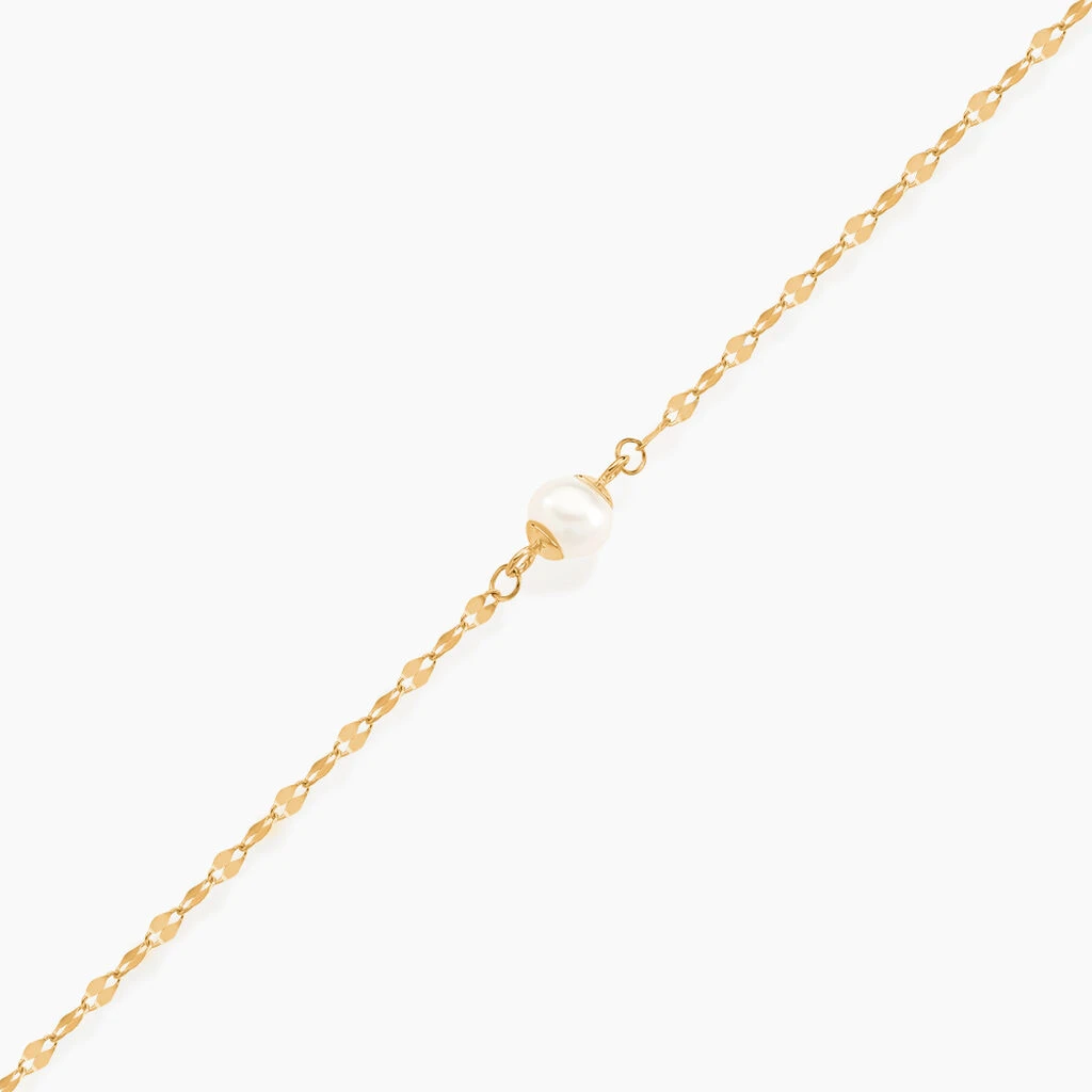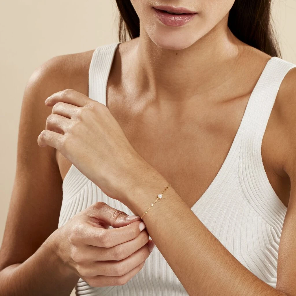 Bracelet Or Jaune 375/1000 Chaine Diamantée Perle De Culture 4.5/5mm 18cm