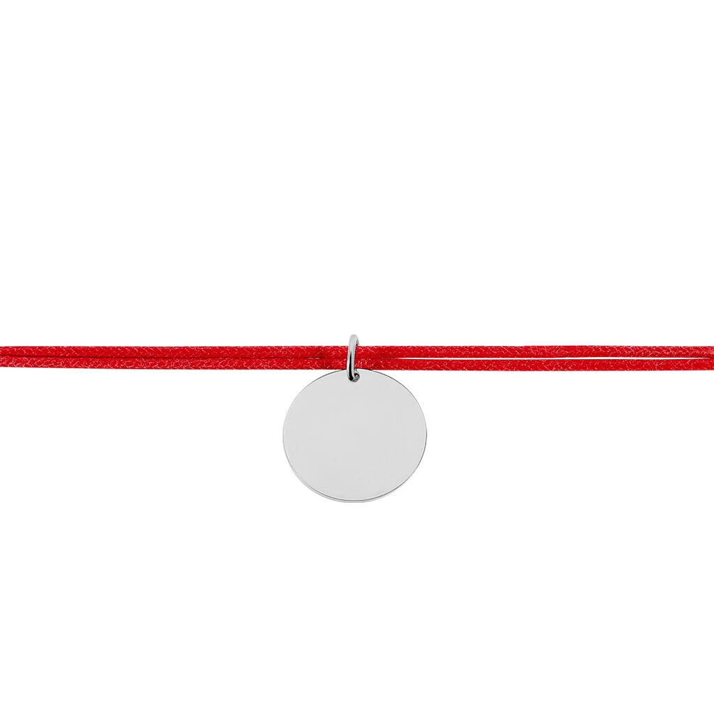 Bracelet Argent Blanc 925/1000 Pastille Cordon Rouge Ajustable