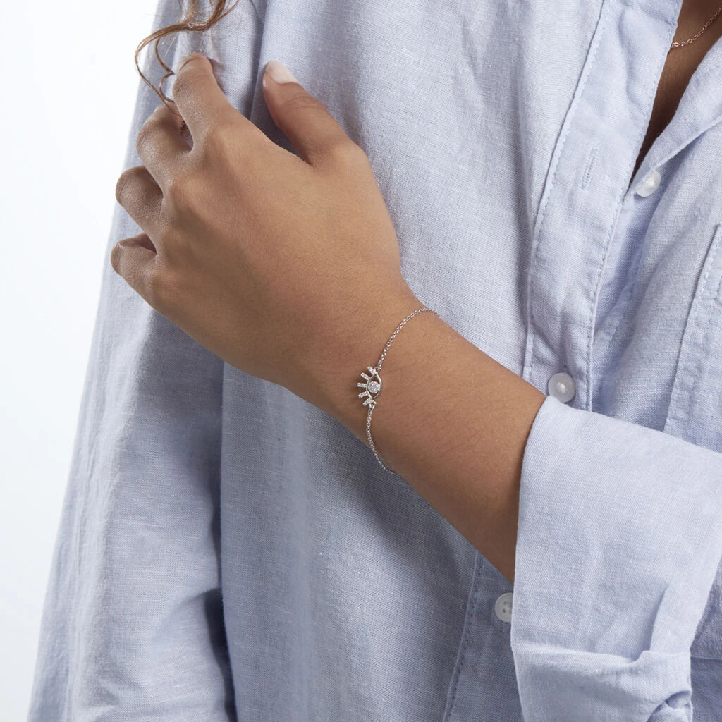 Bracelet Argent Blanc 925/1000 œil Ajoure Oxydes De Zirconium Maille Forcat 18.5cm
