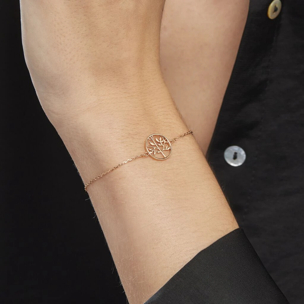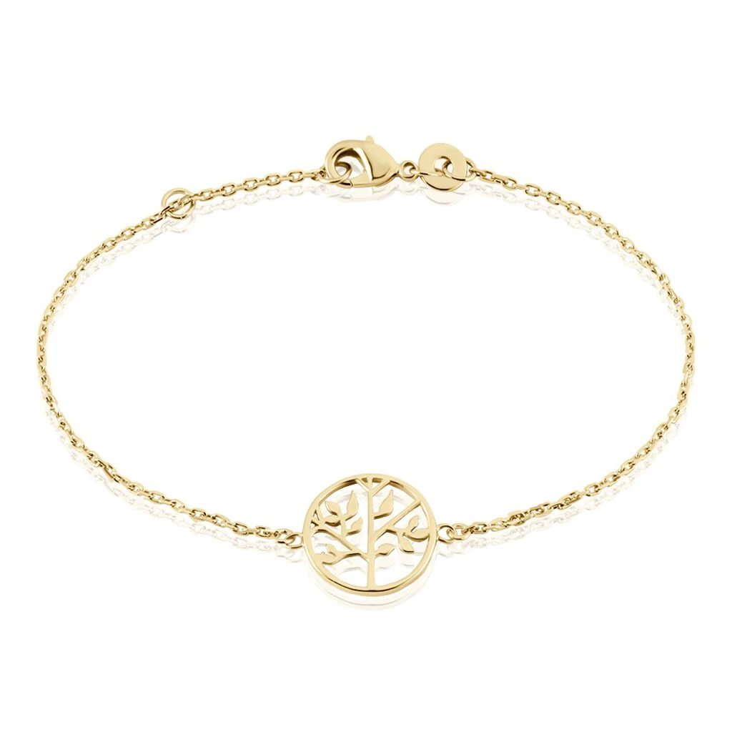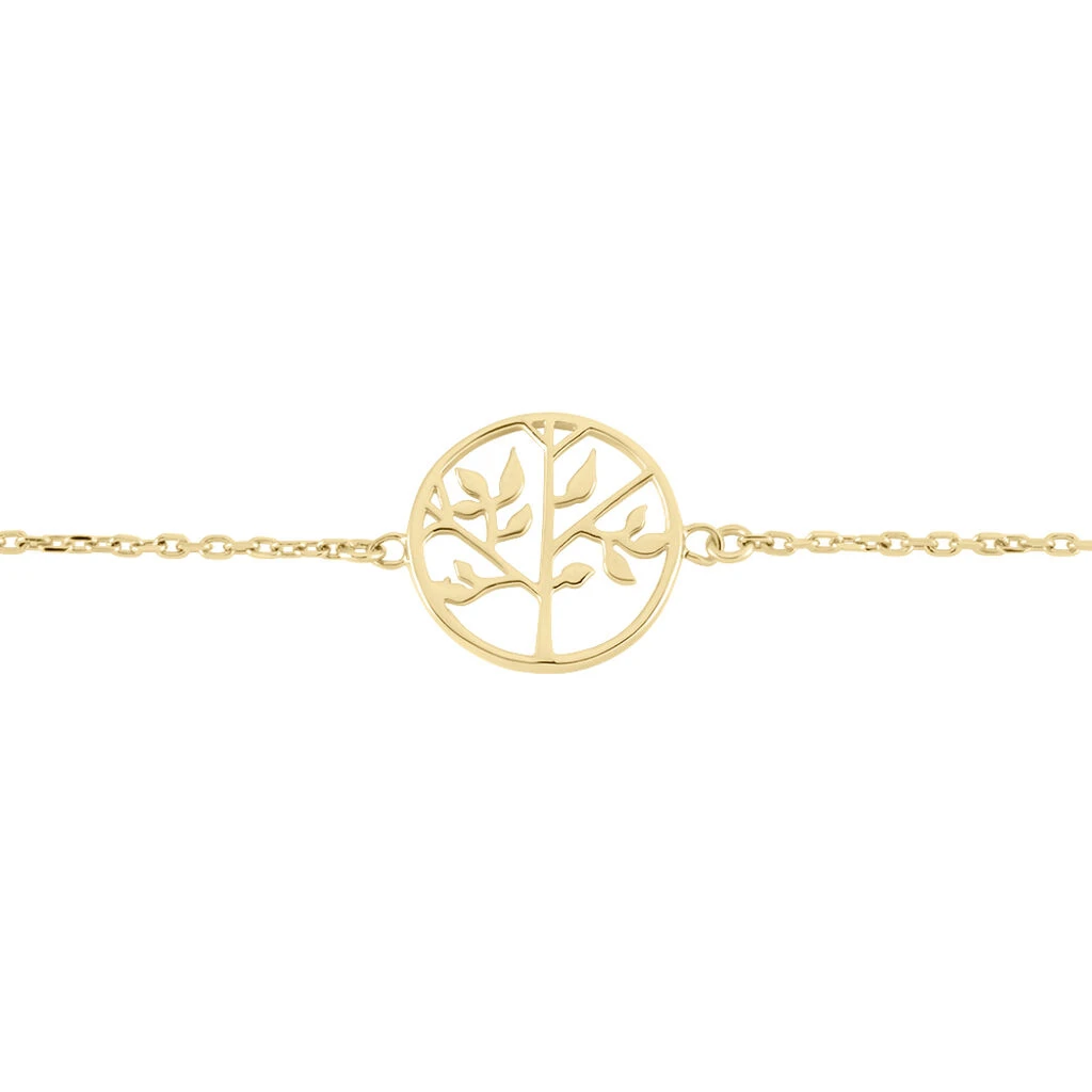 Bracelet Plaque Or Jaune Arbre De Vie Chaine Forcat 18cm