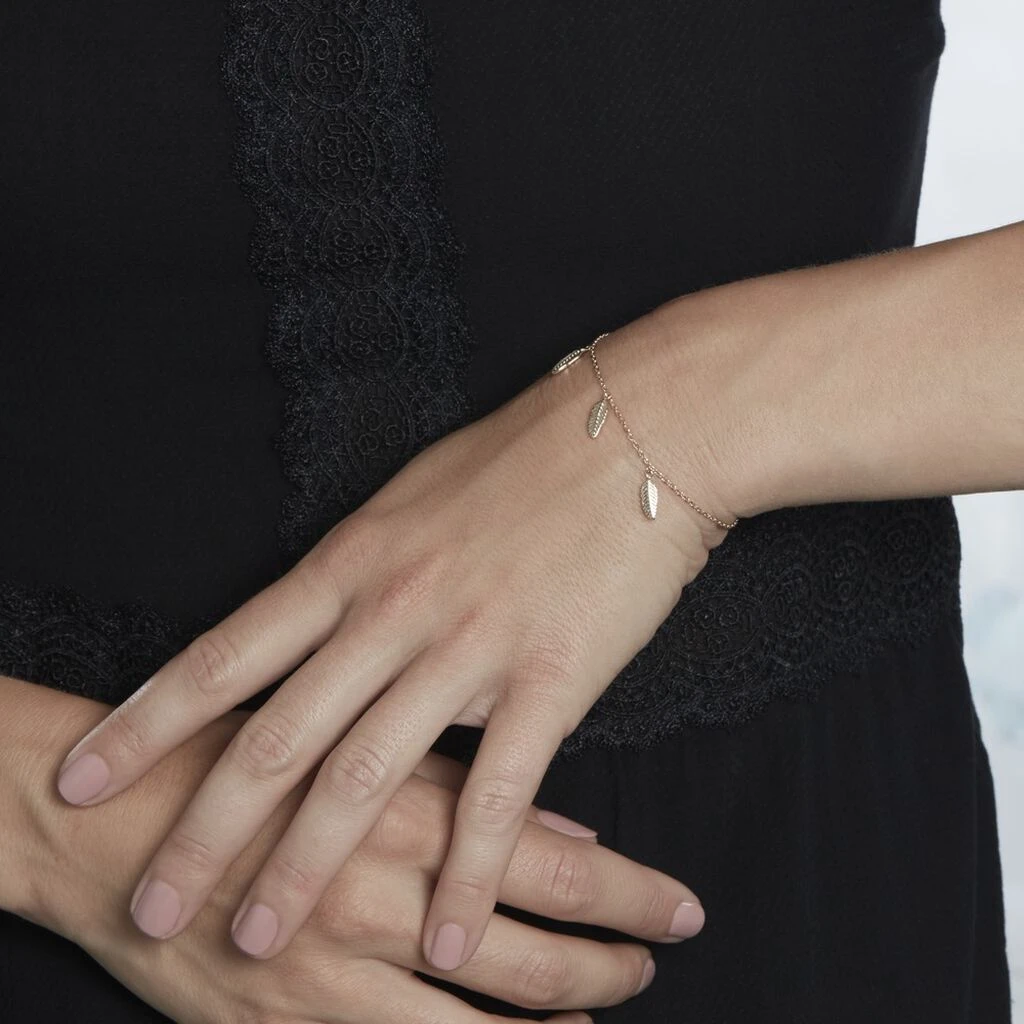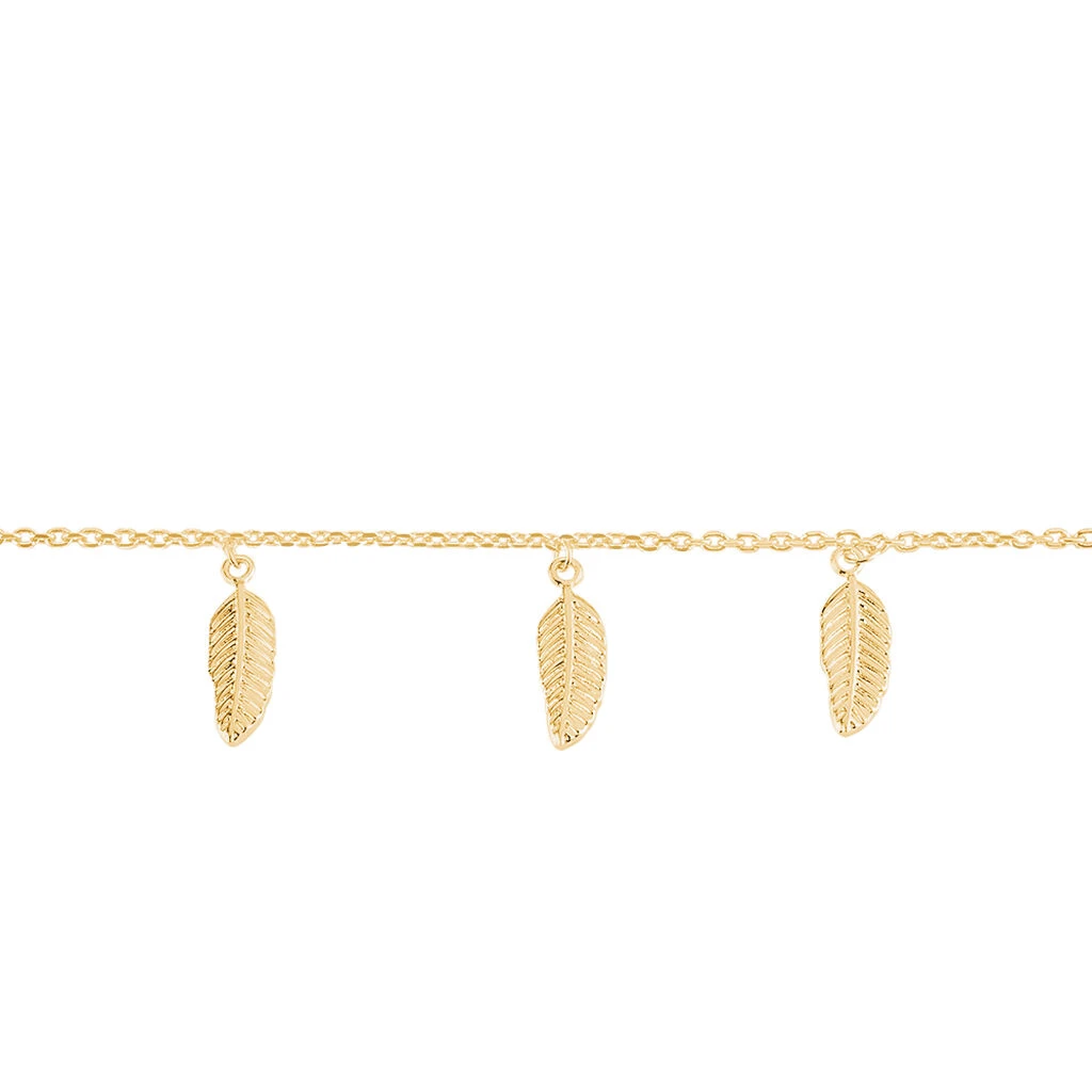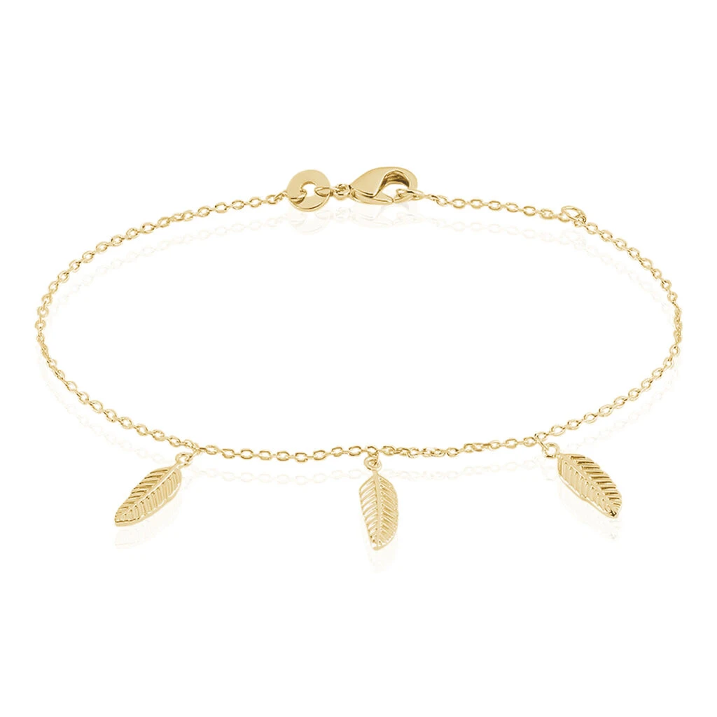 Bracelet Plaque Or Jaune Pampilles Plumes 18cm