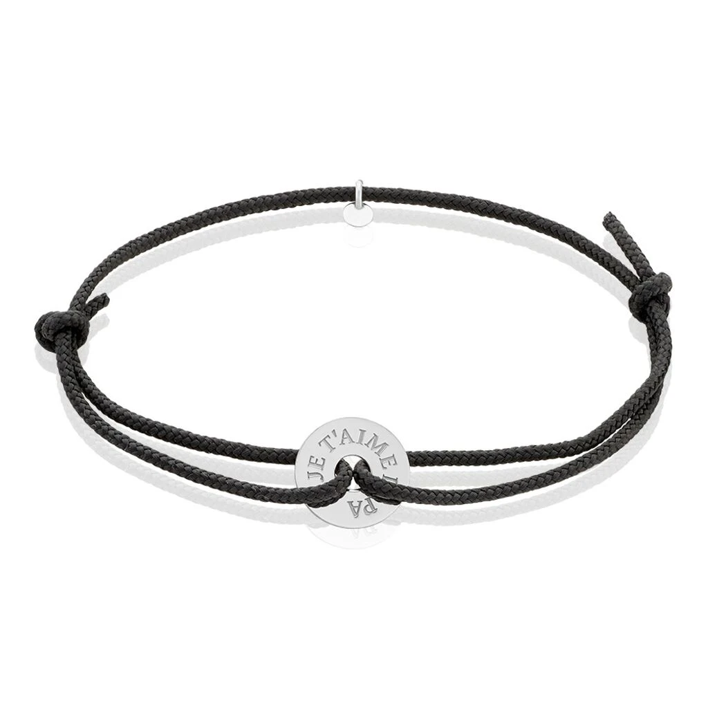 Bracelet Argent Blanc 925/1000 Cercle Gravé Je T’aime Papa Cordon Noir 19cm