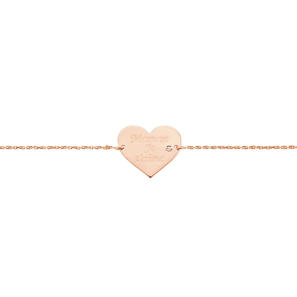 Bracelet Or Rose 375/1000 Cœur Plein Message Maman Je T’aime Oxyde De Zirconium 18cm