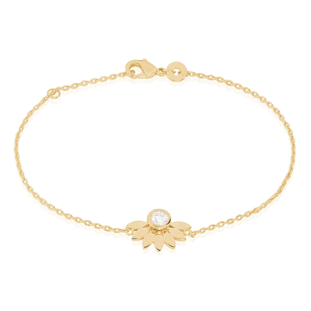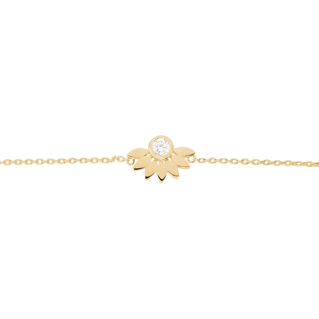 Bracelet Plaqué Or Jaune Motif Demi Fleur Et Oxyde De Zirconium 18cm