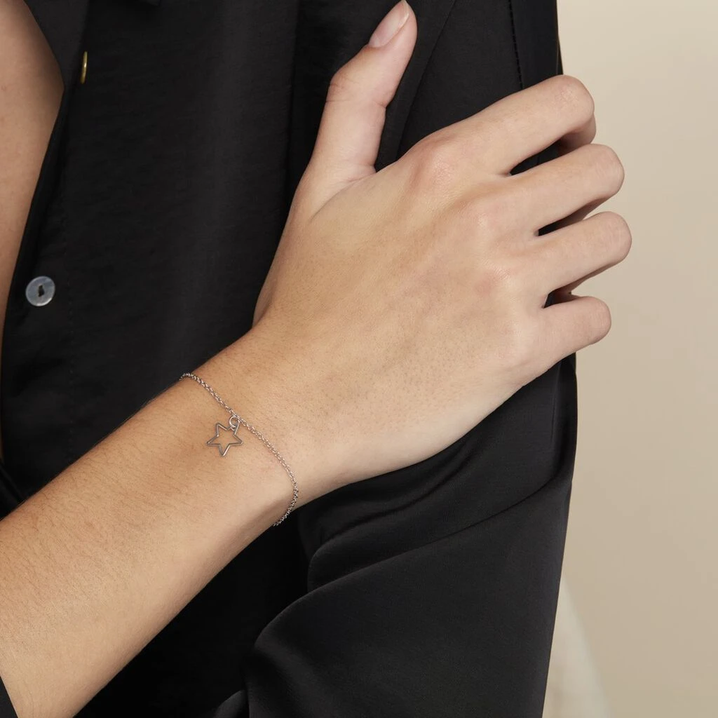 Bracelet Argent Blanc 925/1000 Etoile Maille Forcat 16cm