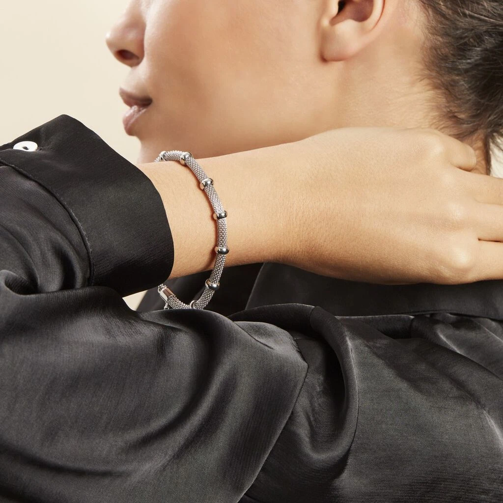 Bracelet Acier Blanc Maille Popcorn Anneaux Largeur 4mm 20cm