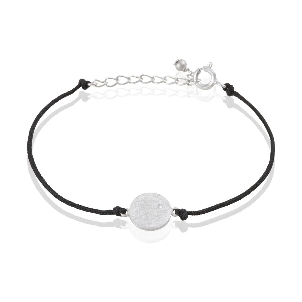 Bracelet Argent 925/1000 Rond Oxyde Sur Cordon Noir