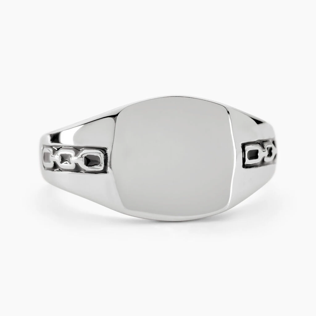 Chevaliere Argent Blanc 925/1000 Carrée Corps De Bague Maillons