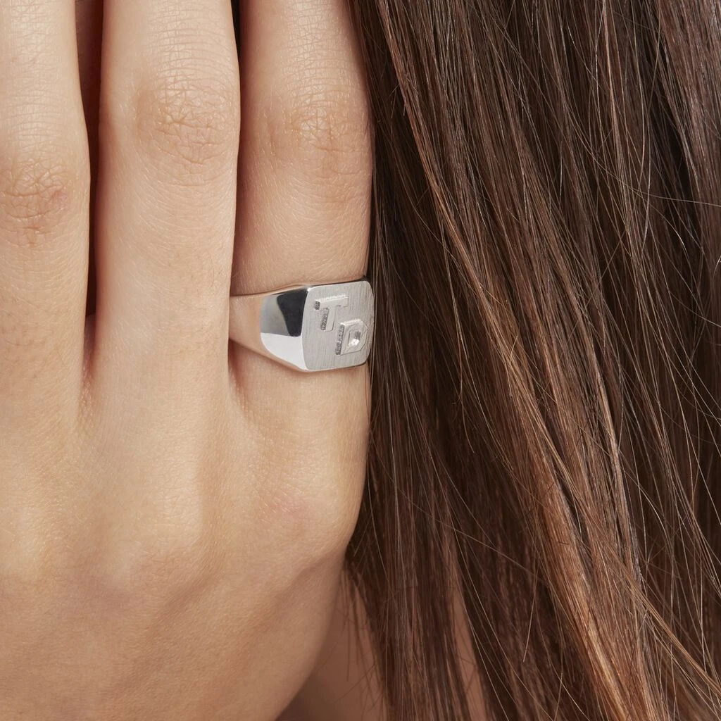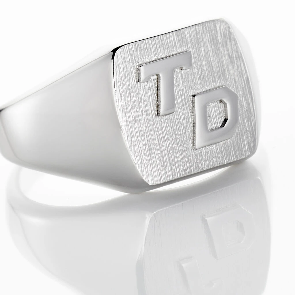 Chevaliere Argent 925/1000 Carree Pm Avec Initiales