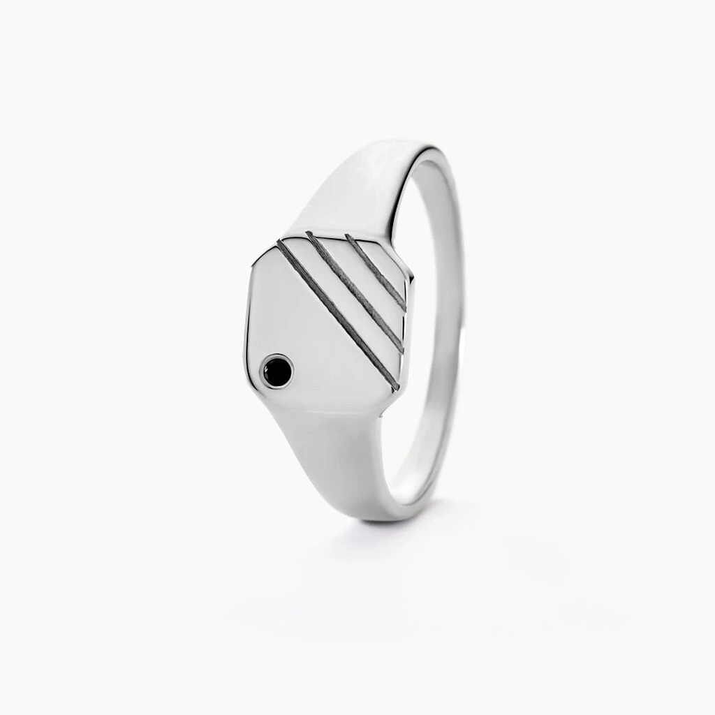 Chevalière Kaden Argent Blanc Oxyde De Zirconium Noir