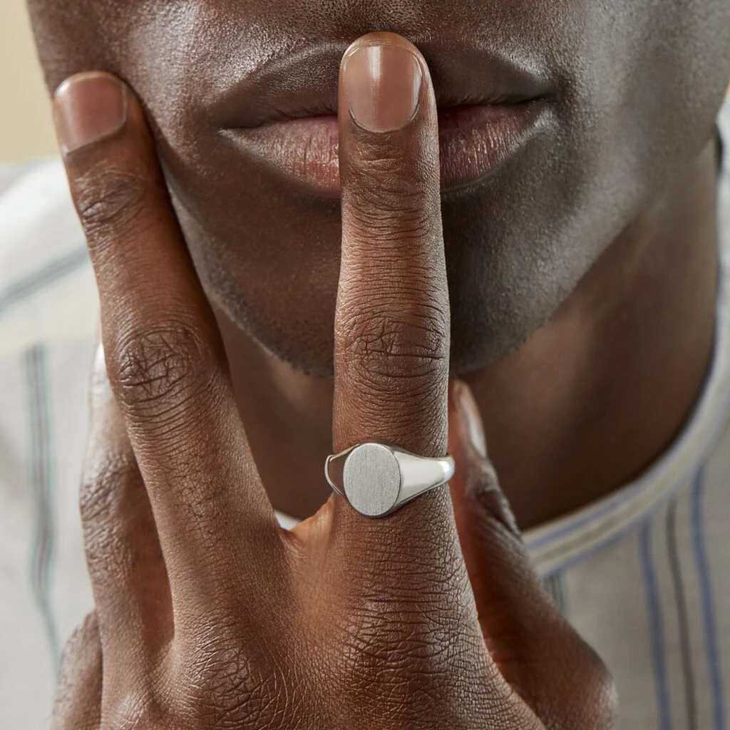 Chevaliere Argent Blanc 925/1000 Plateau Ovale Pm