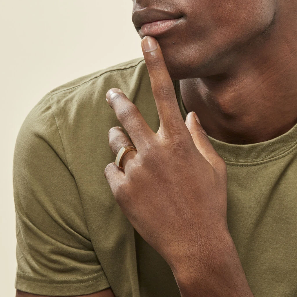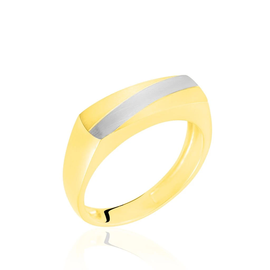 Chevalière Rectangulaire Ligne Or Bicolore