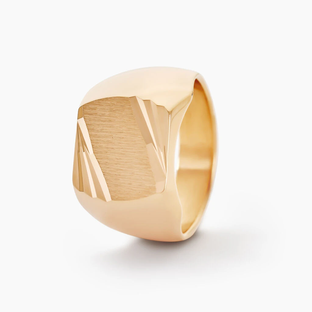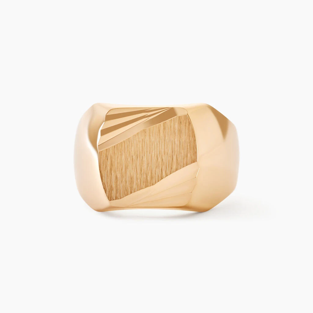 Chevaliere Plaqué Or Jaune Plateau Carre Strie