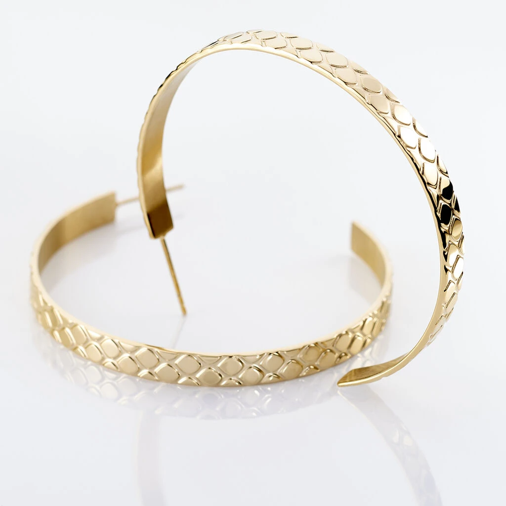 Creoles Acier Dore Ouvertes Aspect Reptile