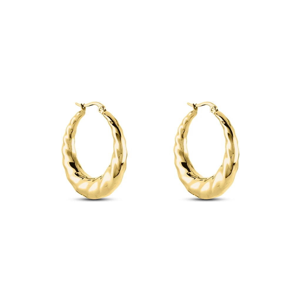 Créoles Acier Doré Effet Vagues Diamètre 22mm