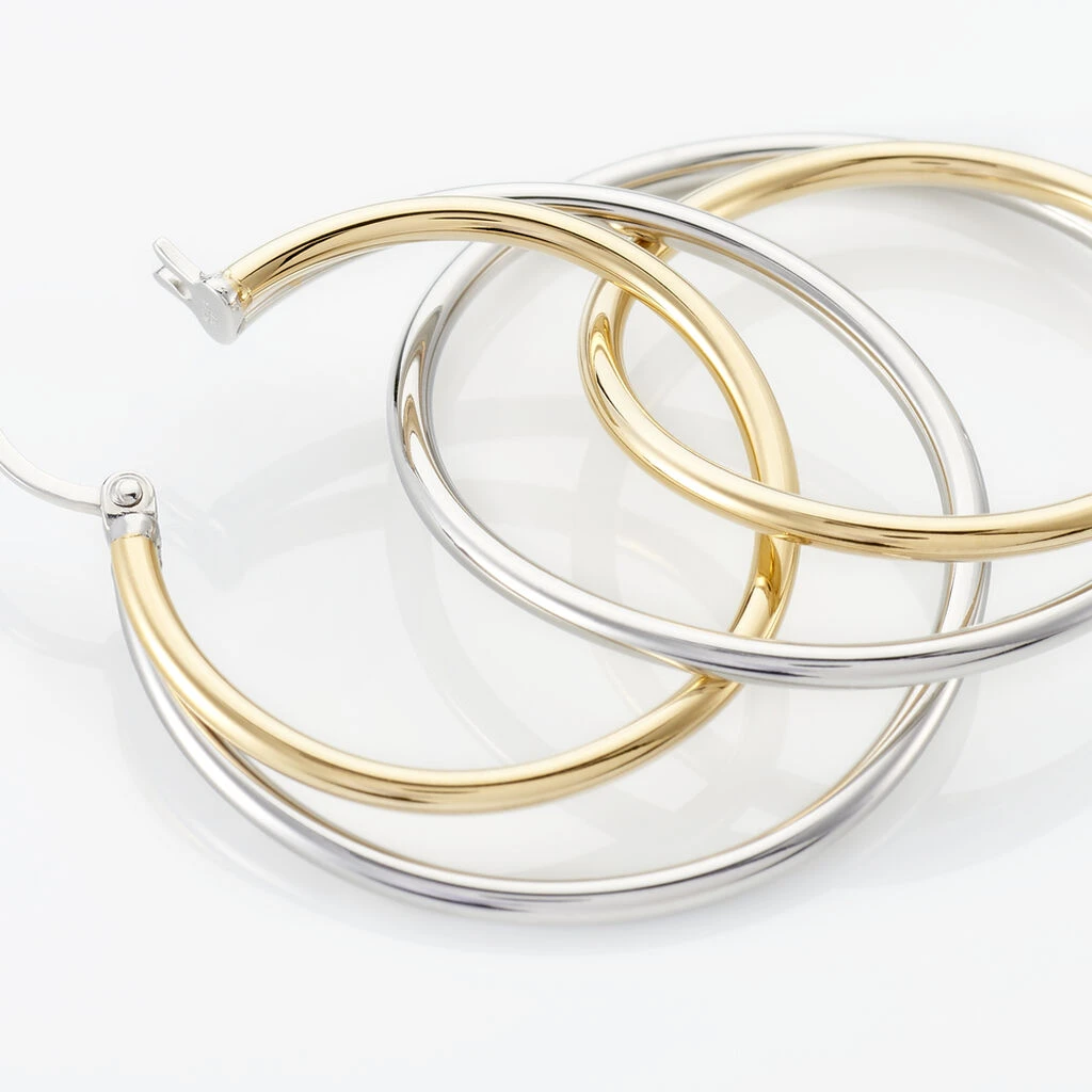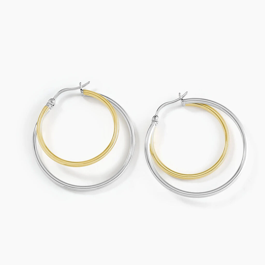 Creoles Acier Bicolore Double Rangs Fil 2mm Diametre 25 Et 33mm