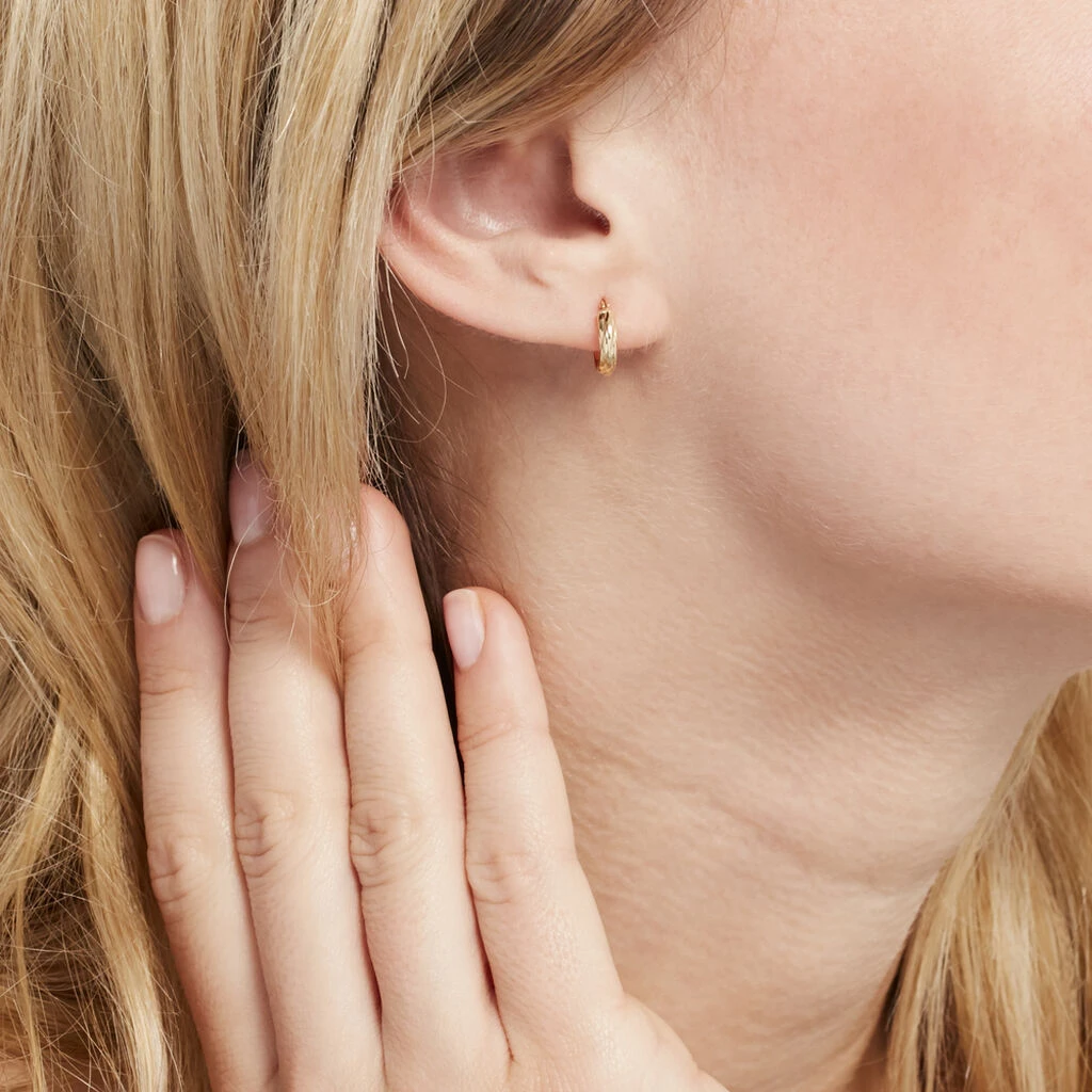 Créoles Or Jaune 375/1000 Fil Demi Jonc Effet Diamanté Largeur 3mm Diamètre 8mm