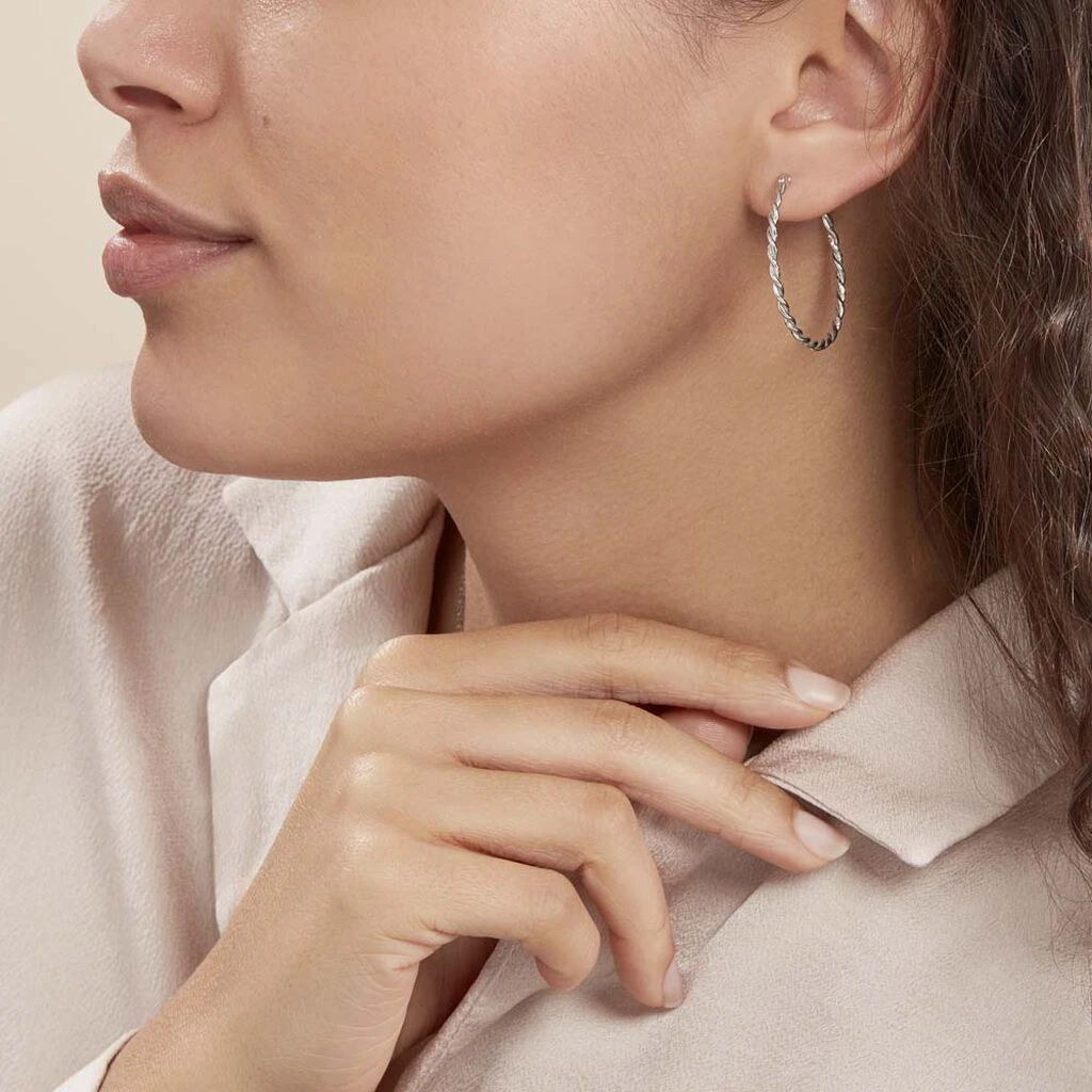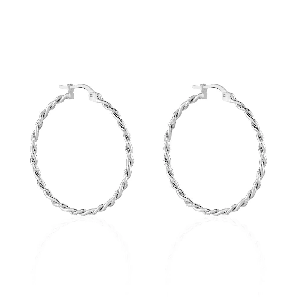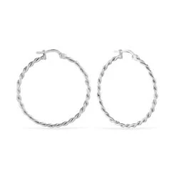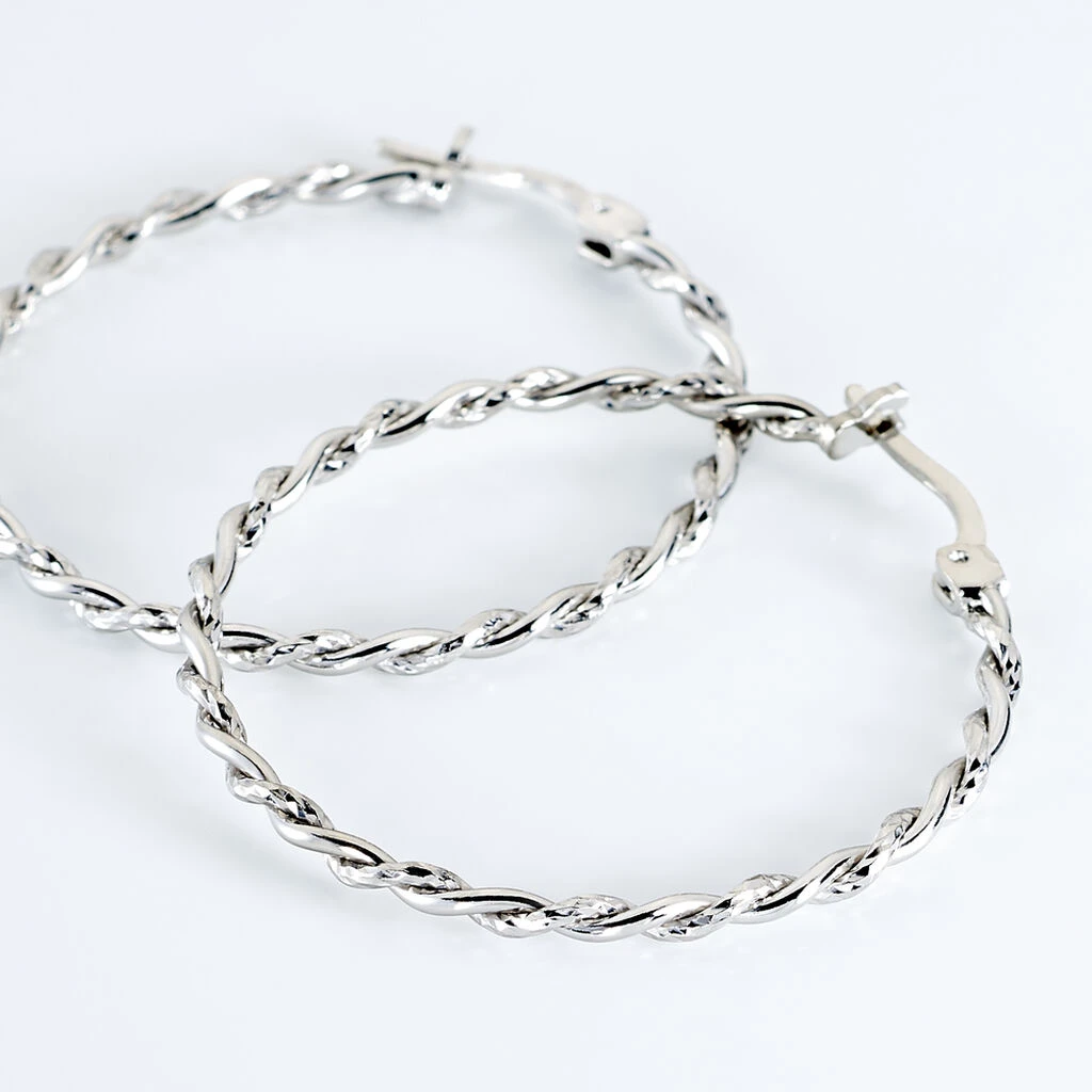 Créoles Argent Blanc 925/1000 Effet Torsade Fil Diamante Et Fil Lisse Largeur 2mm Diametre 30mm