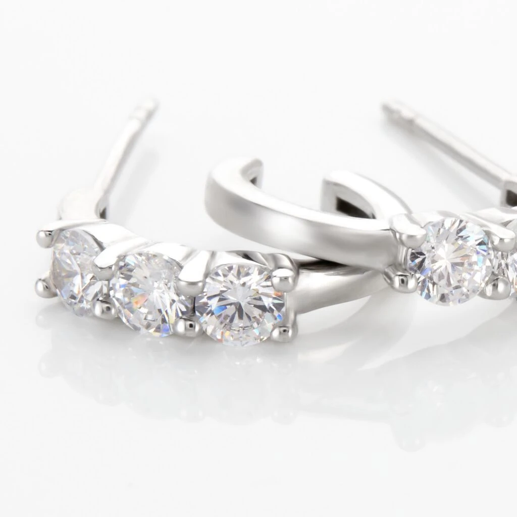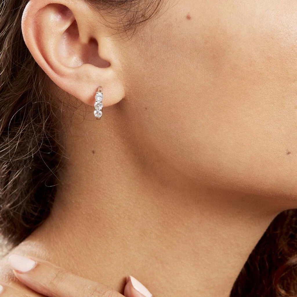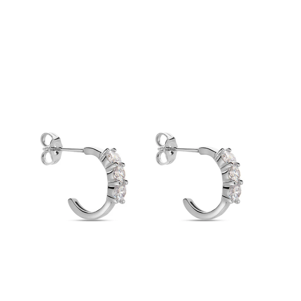Creoles Argent Blanc 925/1000 Trilogie Serti Griffes Oxydes De Zirconium Largeur 3mm Diametre 15.5mm
