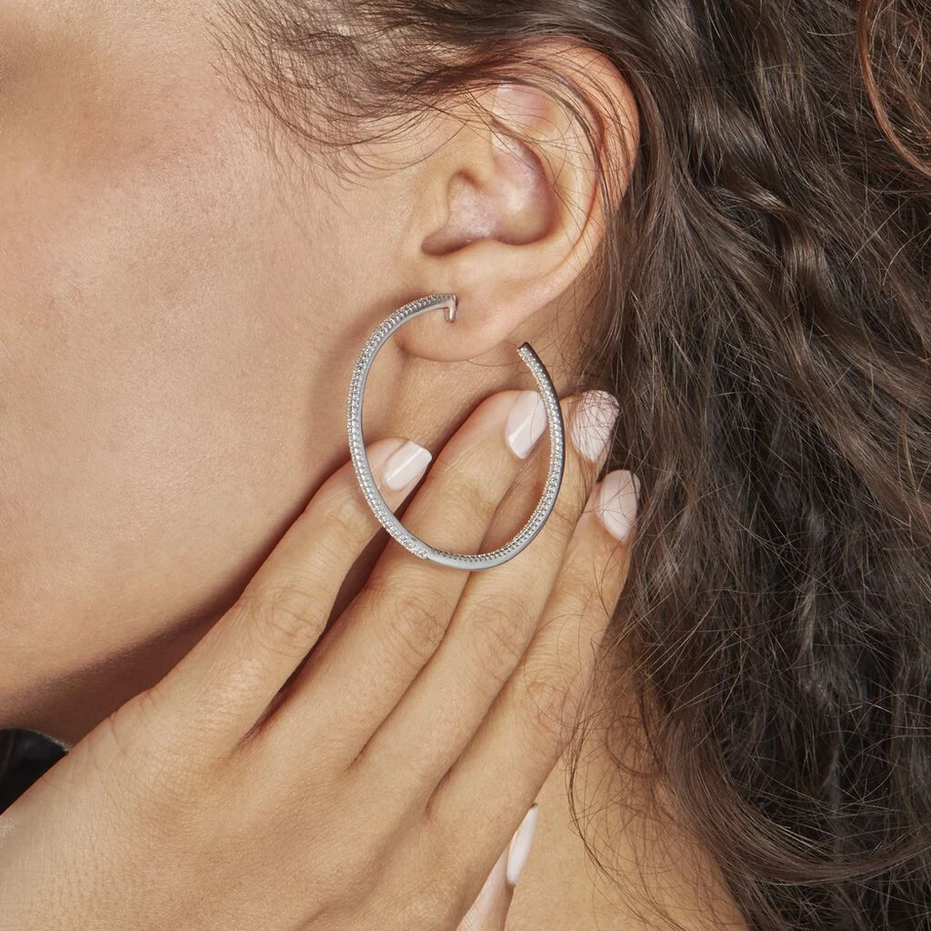 Creoles Argent 925/1000 Micro Setting Oxydes De Zirconium Diametre 45mm