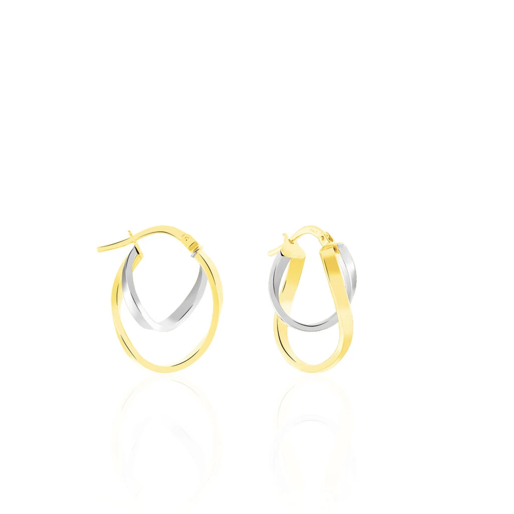 Créoles Or Bicolore 375/1000 Deux Fils Carrés Lisses Largeur 1.8mm Diamètre 17x11mm