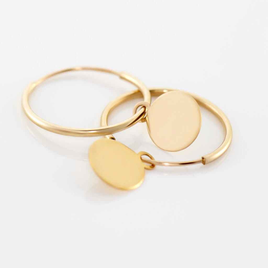 Créoles Or Jaune 375/1000 Pampilles Rondes Fil Flexible Lisse Largeur 0.8mm Diamètre 11mm