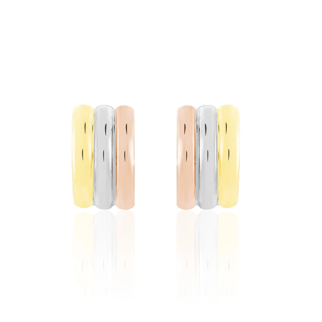 Créoles Or Tricolore 375/1000 Demi Cercle Triple Rangs Lisses