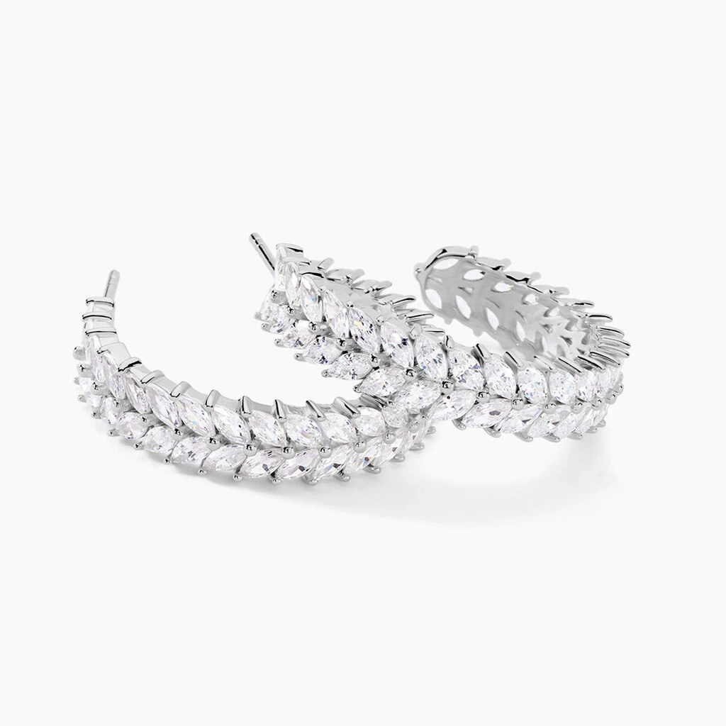 Créoles Argent 925/1000 Oxydes De Zirconium Navettes Serti Griffes Diamètre 27mm