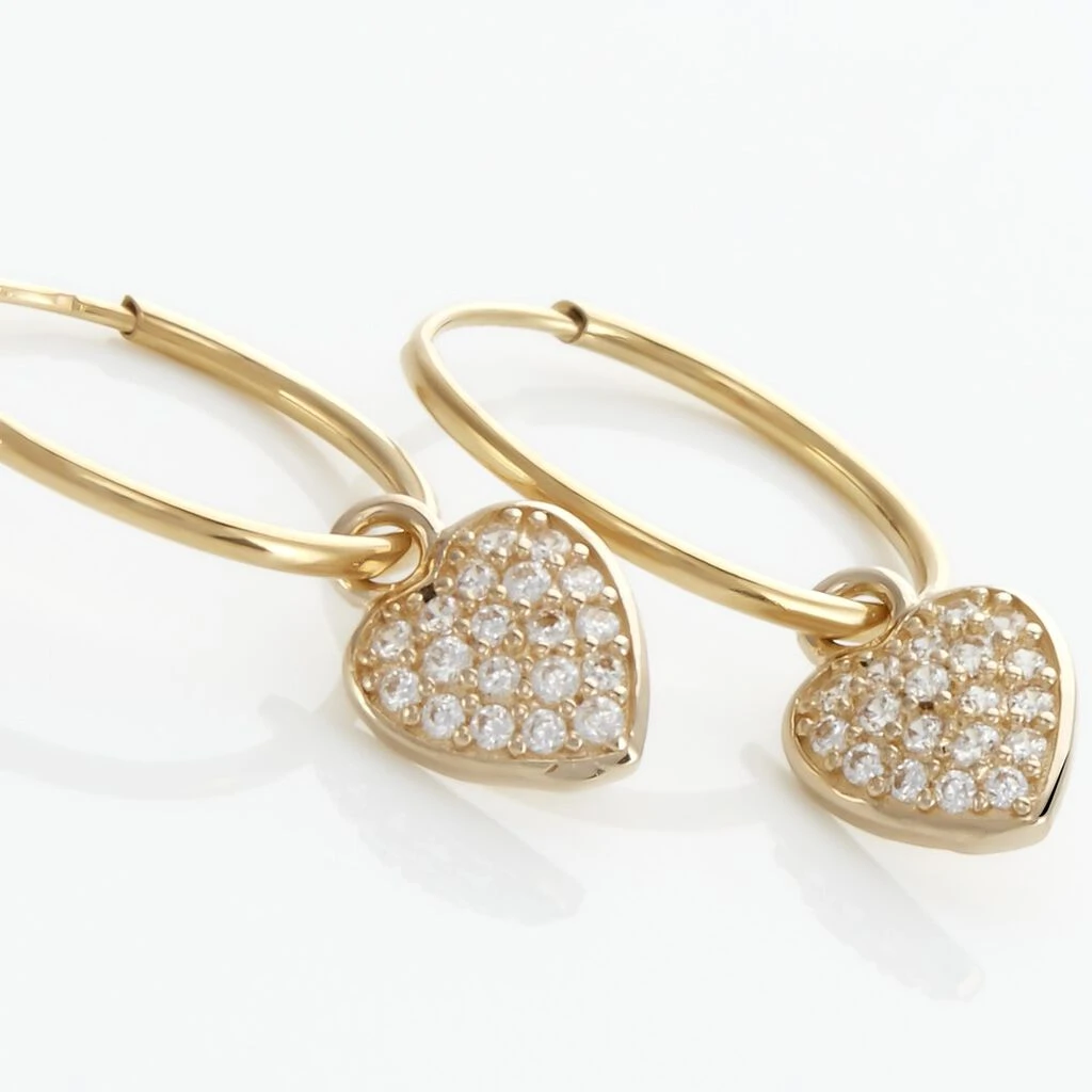 Créoles Or Jaune 375/1000 Pampilles Coeurs Oxydes De Zirconium Fil Flexible Lisse Largeur 0.8mm Diamètre 11mm