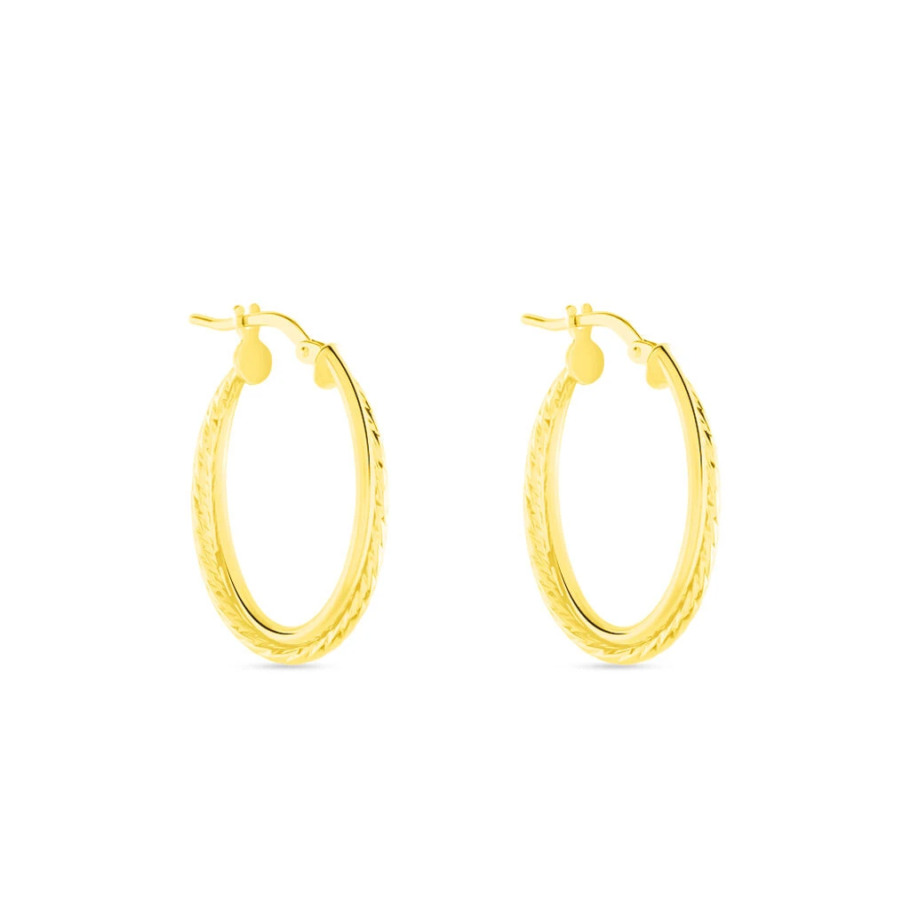Créoles Or Jaune 375/1000 Ovales Croisées Fils Ronds Lisse Et Torsadé Largeur 1.5mm Diamètre 15x23mm
