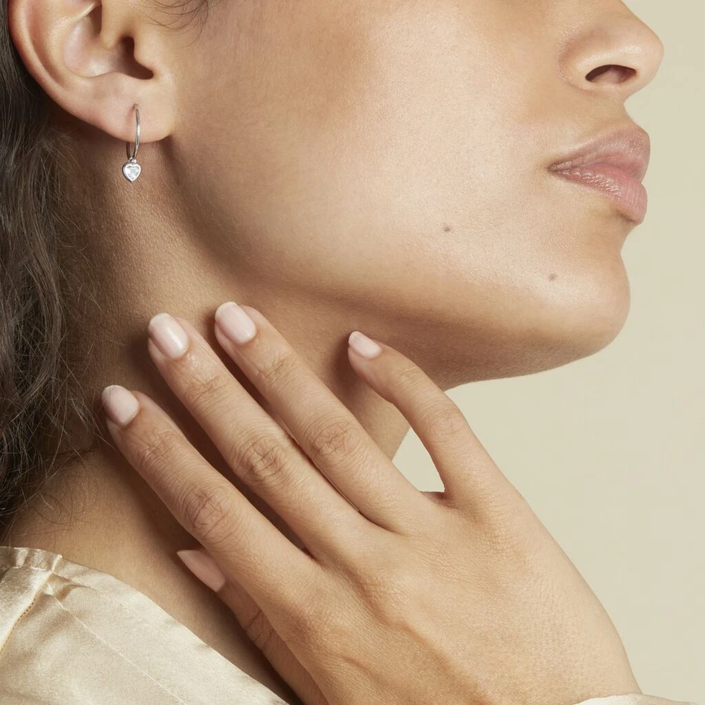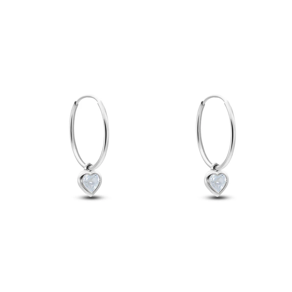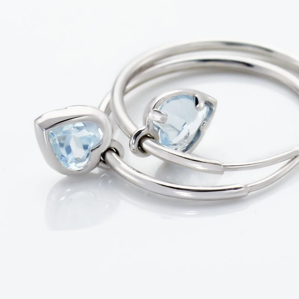 Créoles Or Blanc 375/1000 Cœur Topaze Azur Serti Clos 15mm