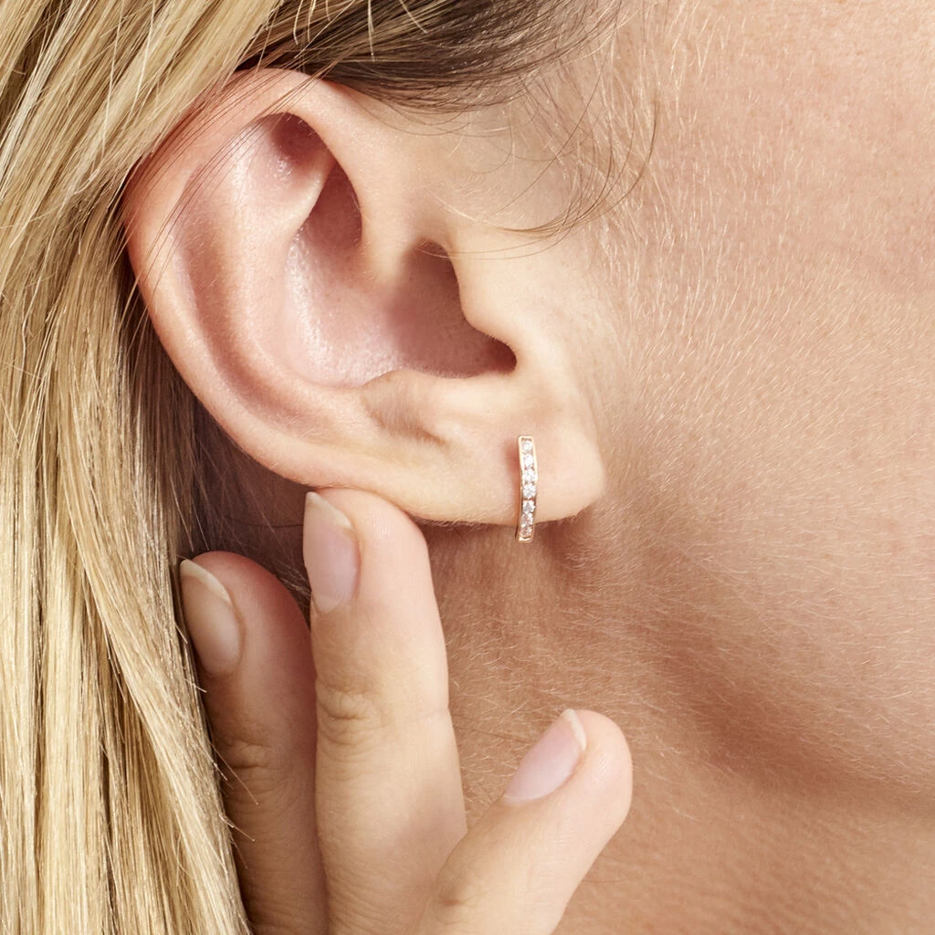 Créoles Or Jaune 375/1000 Demi Cercle Oxydes De Zirconium