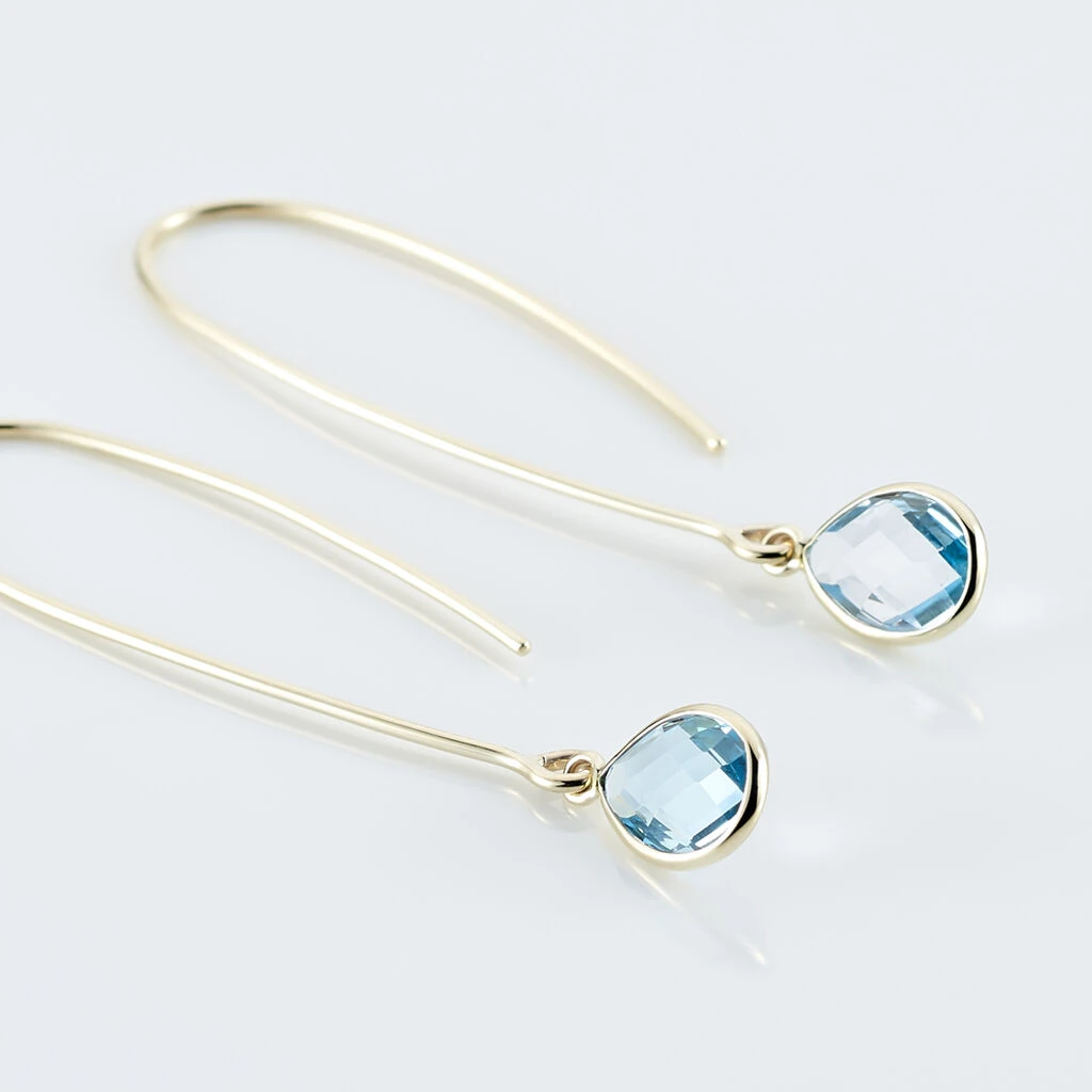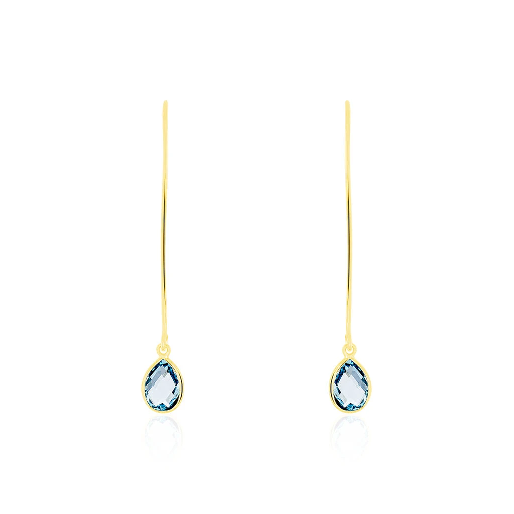 Boucles D’oreilles Pendantes Or Jaune Chaines Topaze Bleu 2.55ct