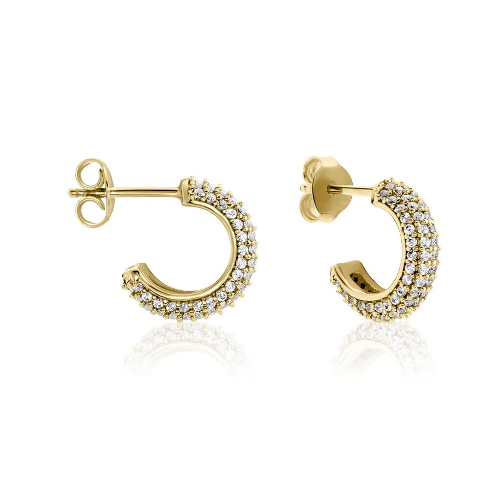 Créoles Plaqué Or Jaune Pavage Oxydes De Zirconium Diamètre 14mm