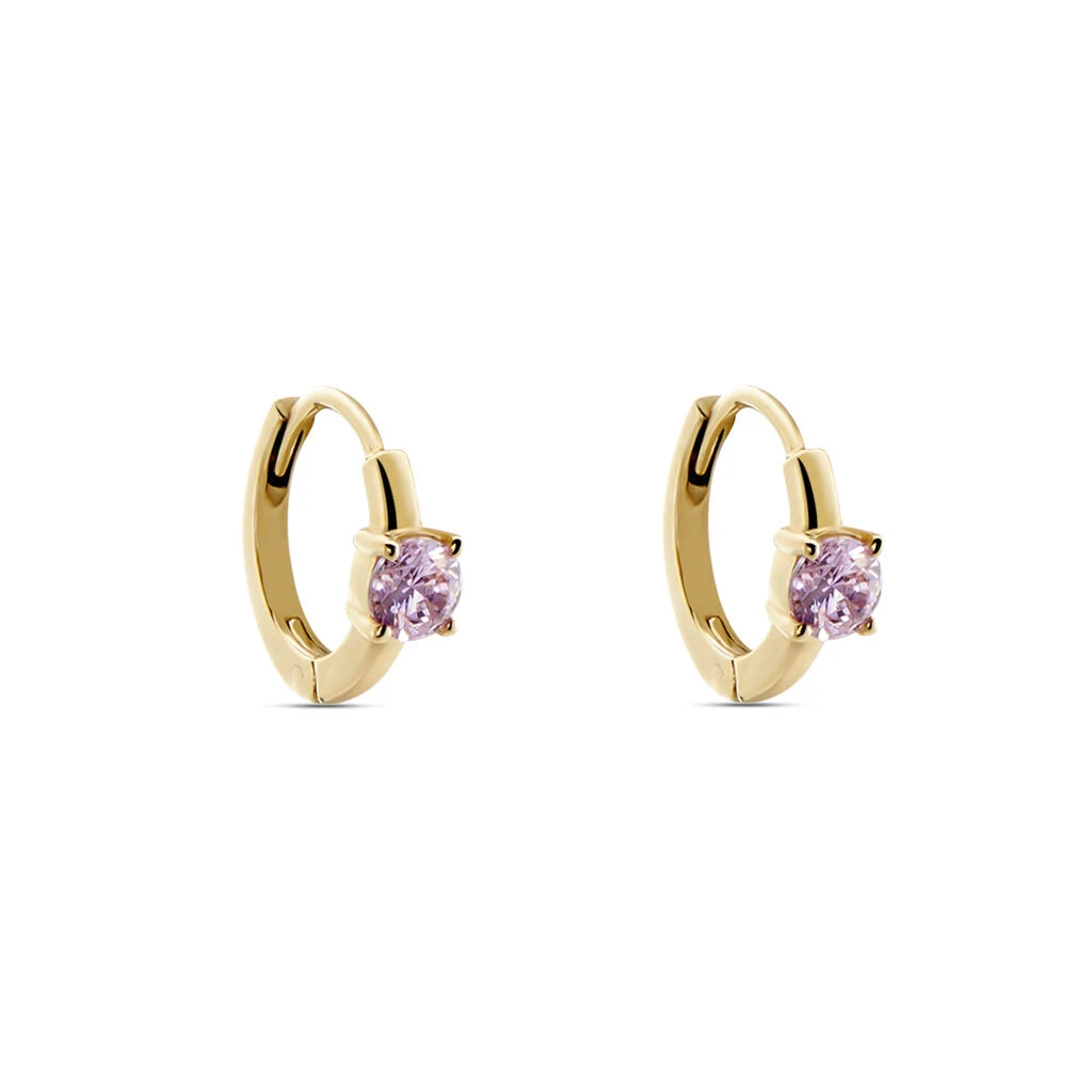 Creoles Plaque Or Jaune Serti Griffes Oxydes De Zirconium Rose Diametre 9mm
