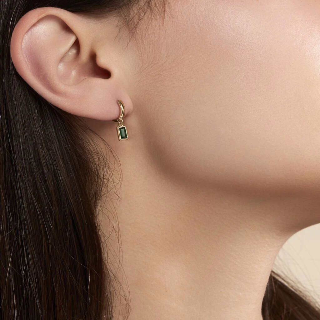 Creoles Plaque Or Jaune Pampilles Barrettes Serties Clos Oxydes De Zirconium Verts Diametre 10mm