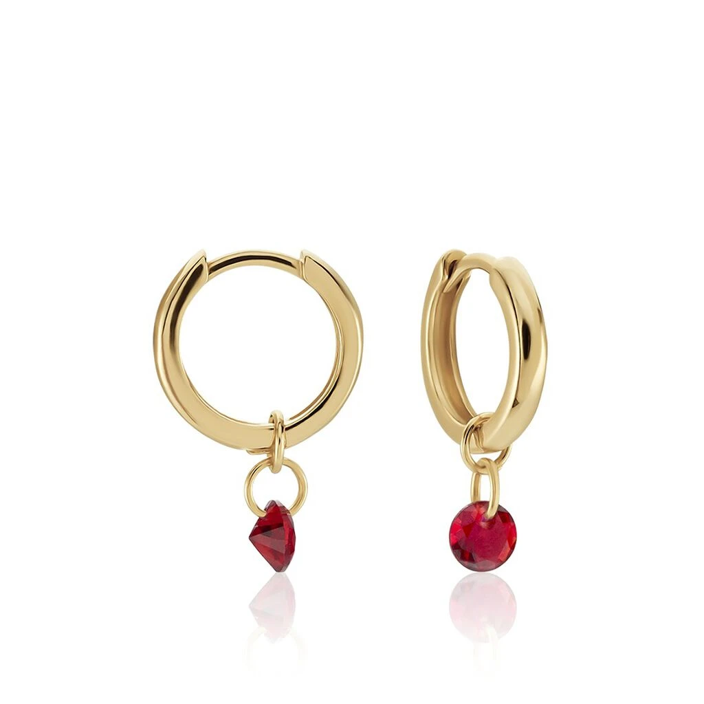 Créoles Plaqué Or Pampilles Oxydes De Zirconium Rouges Diamètre 9mm
