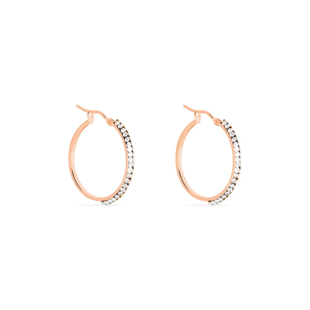 Créoles Or Rose 375/1000 Fil Carré Strass Largeur 2mm Diamètre 22.7mm