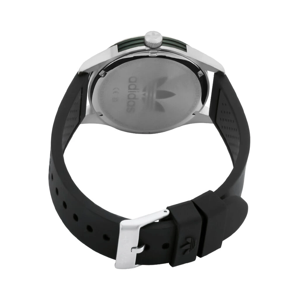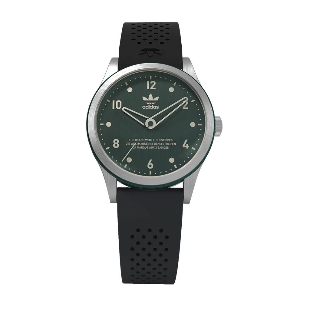 Montre Adidas Code Three Acier Dore Ronde Quartz 40mm Fond Vert Bracelet Silicone Noir Aosy22516