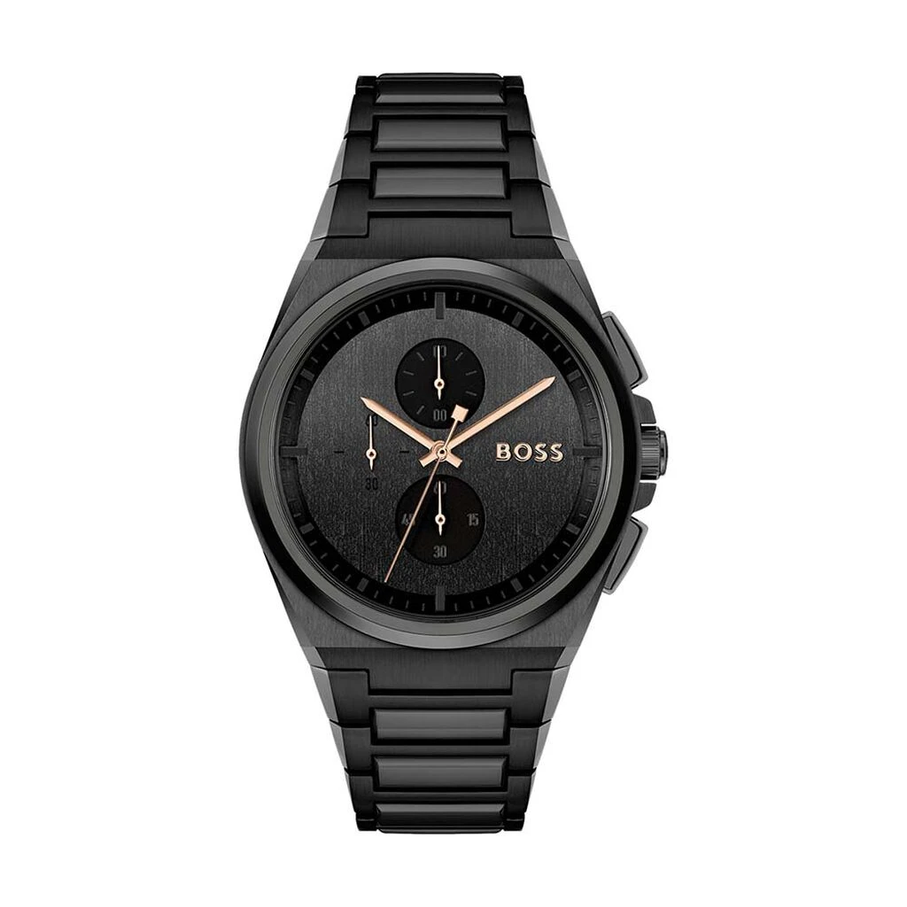 Montre Boss Steer Chrono Acier Noir Ronde Quartz 44mm Fond Noir Bracelet Acier Noir 1514068